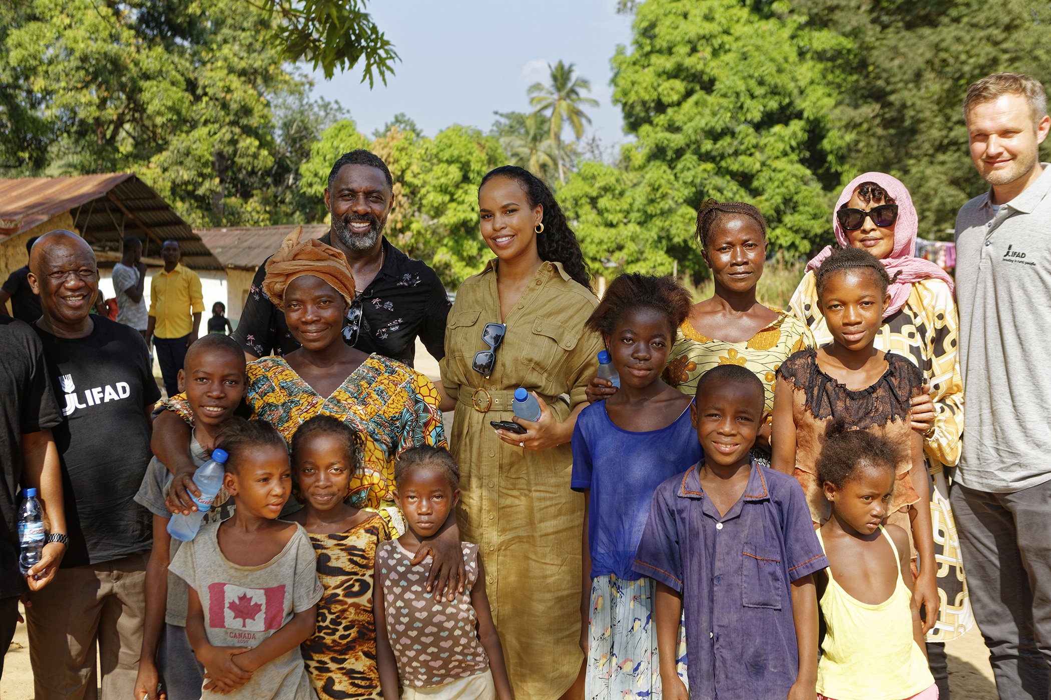 Michael Sheldrick (left) in Sierra Leone with Global Citizen Advocate Idris Elba and the International Fund for Agricultural Development (IFAD).