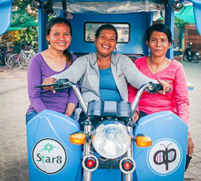 The special tuk-tuk was developed by Star8, an Australian company that manufactures solar tuk-tuks, buses, and roof panels. It recently set up a factory in what has become Phnom Penh’s first solar-powered building. Solar panels on the tuk-tuk’s roof generate enough power for the vehicle to travel 75 miles, with a top speed of 35 miles per hour before needing to be recharged. According to those in the solar industry, high levels of solar radiation combined with the need for low-cost power make Cambodia an ideal place for the development of solar energy.