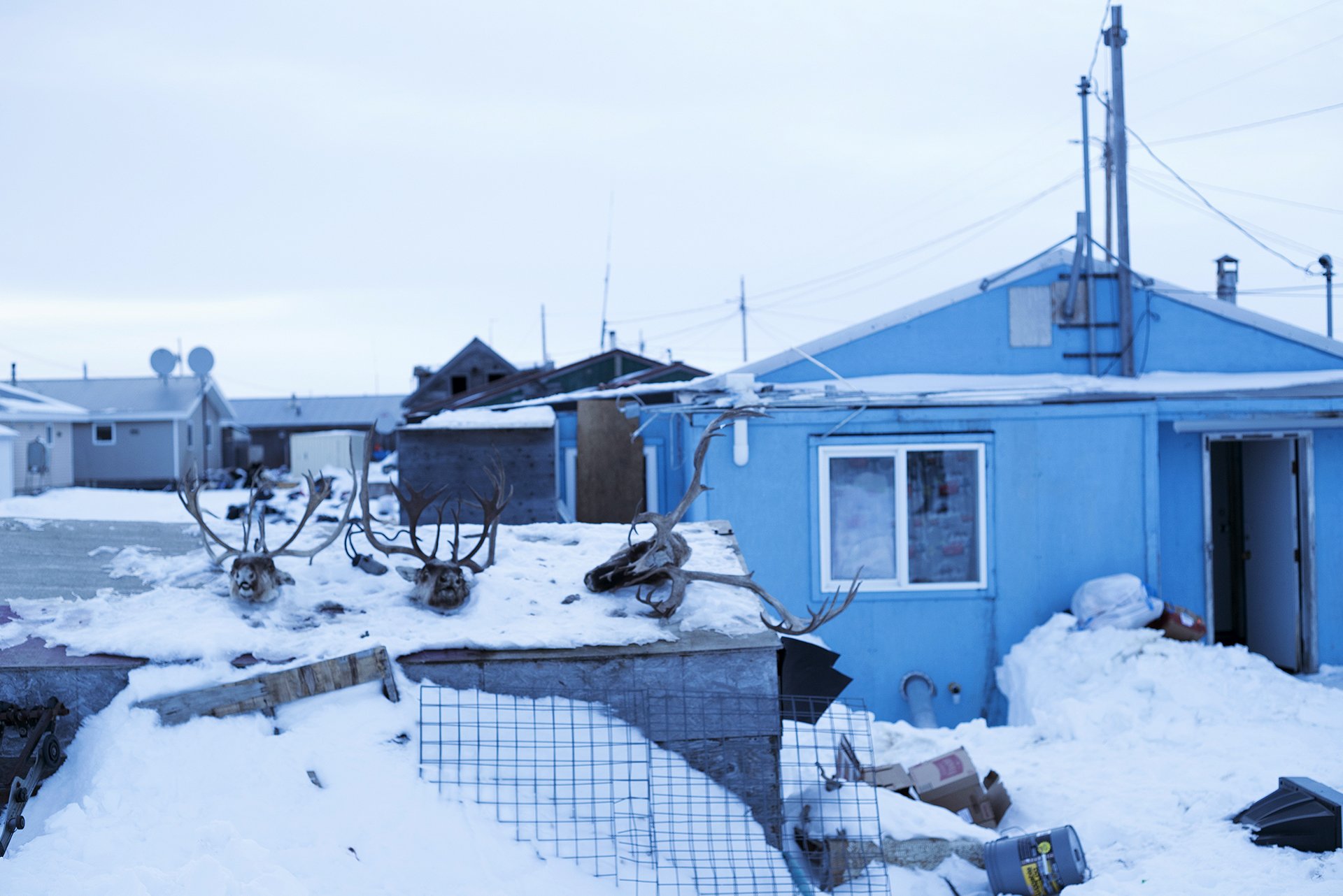 That wolf’s hide is slung over a water tank in front of us. Caribou has recently been killed, too, meat which has been fried, roasted, put into soups. This is part of the tundra subsistence that the people of Kivalina have practiced for centuries.
