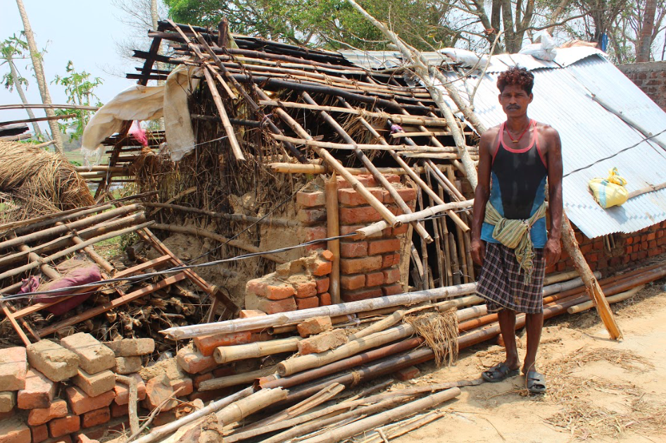 Raju Bhoi, 32, stands next to his damaged home in Jagatsinghpur district, Odisha, on May 9, 2019. Following the cyclone, his family lived in a nearby school serving as a shelter for families who lost their homes. Mercy Corps worked with local communities and governments to provide needed food aid, clean water, and hygiene kits for those who had lost everything, supporting more than 123,000 people in India in 2019.