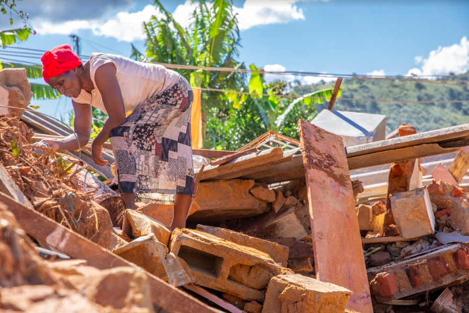 Tamary Zunga, 52, searches for personal belongings amid the wreckage of her home. Tamary said at the time nobody in the community could remember seeing a storm like this since 1942. Ngangu had multiple mudslides running through its center and many homes were damaged or completely destroyed. In the aftermath, Mercy Corps reached more than 26,000 people with emergency kits and health and hygiene promotion.