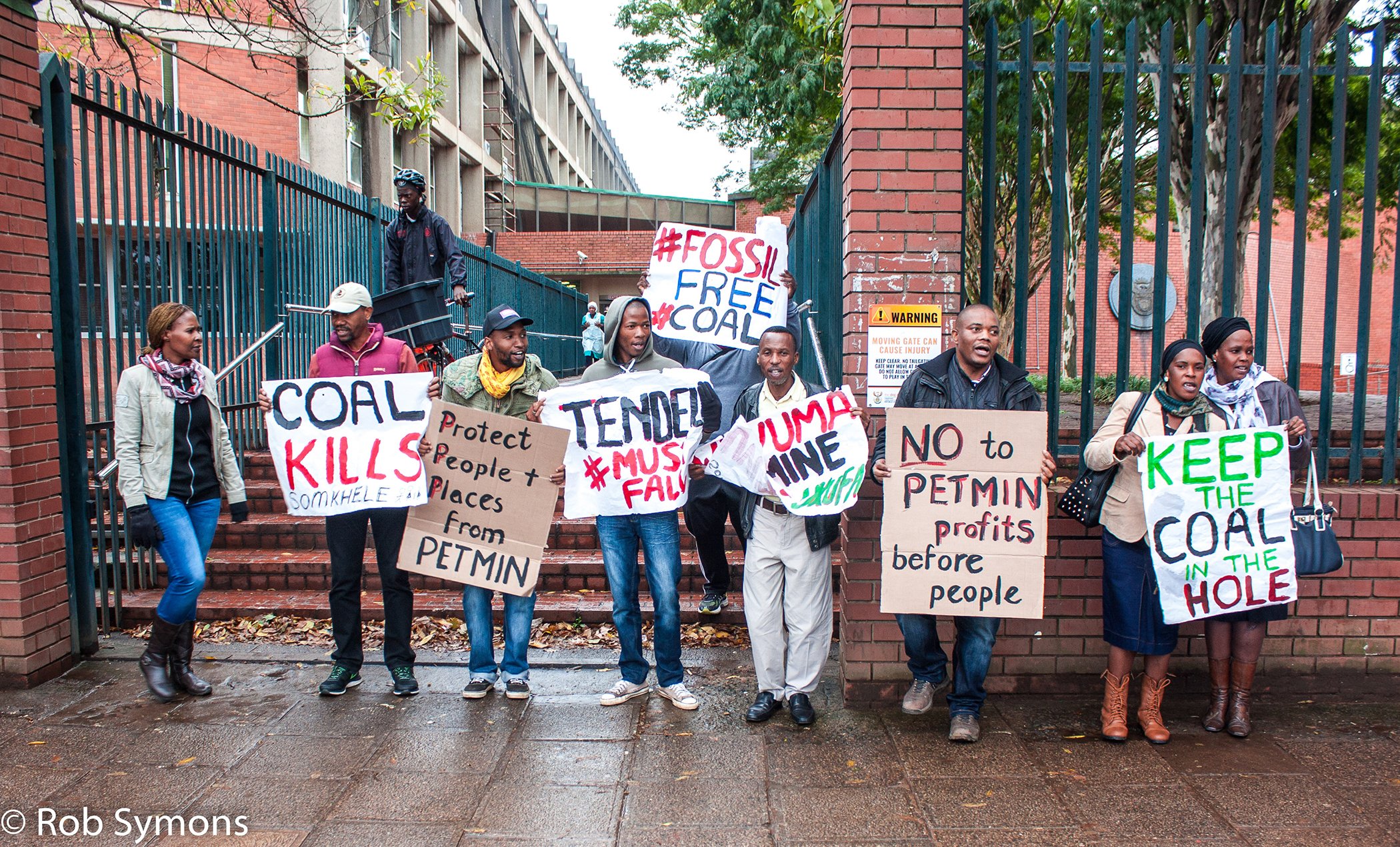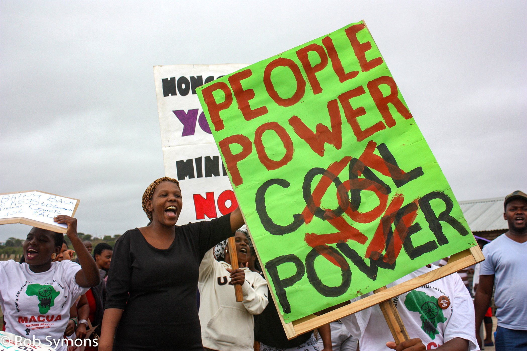 A protest against Tendele Mine in Somkhele, South Africa in 2016.
