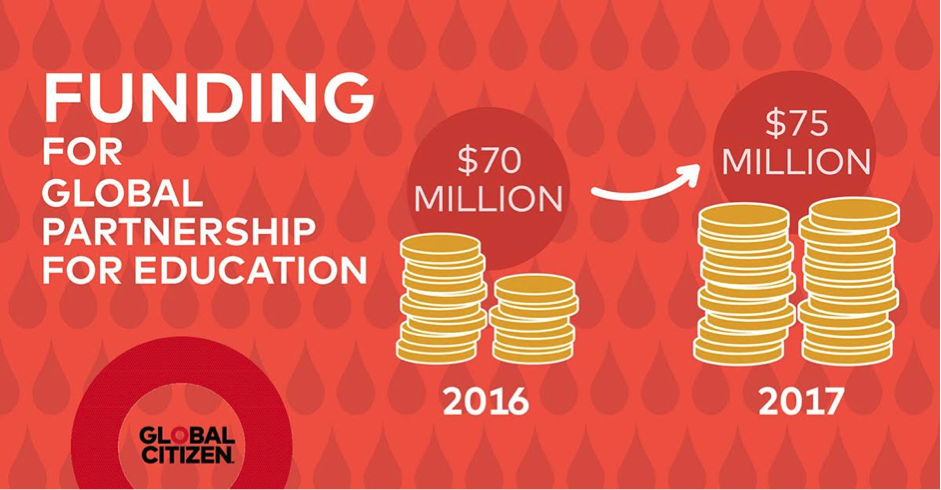 So we are very pleased to announce that the United States increased funding for the Global Partnership for Education by 15 percent — from $70 million in FY16 to $75 million in FY17. This commitment is meant to help the most marginalized and vulnerable children access an education, and according to our estimates, it is set to affect the lives of an incredible, 21,048,387 individuals. Overall levels of United States international basic education funding have remained the same from FY16 to FY17.