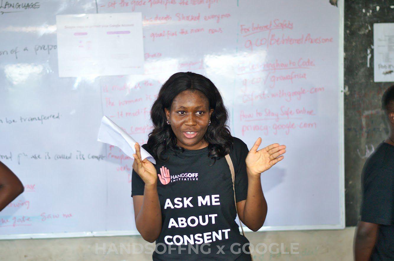 We are looking to change this at HandsOff. Taking this mission into schools can sometimes be a barrier, but we would love consent education to be part of the Nigerian school curriculum and have trained feminist teachers teach students about consent. However, getting the required manpower is difficult and this can be challenging.