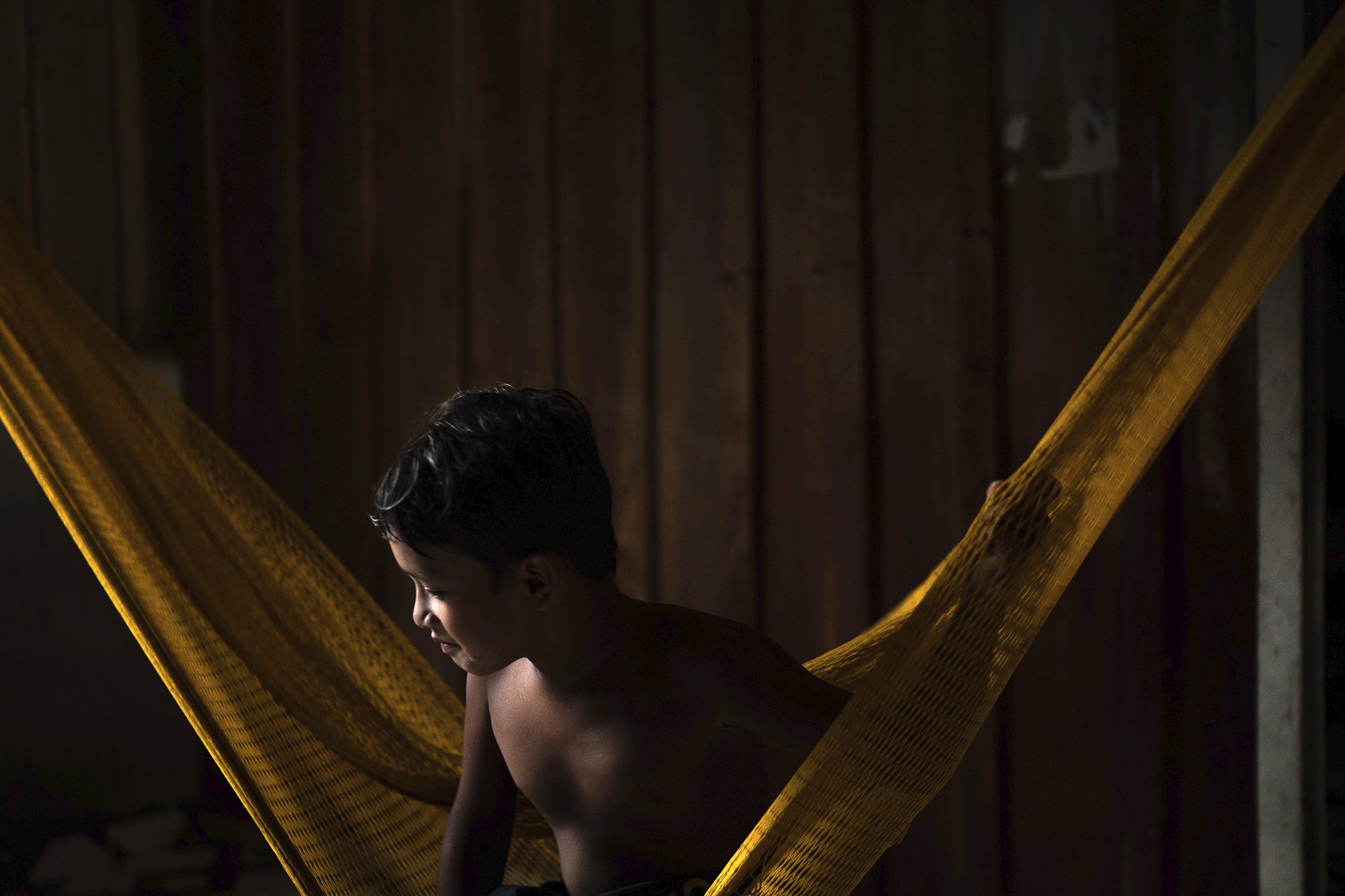 A youth from the Sateré Mawé indigenous ethnic group sits in a hammock in the Gaviao community near Manaus, Brazil, May 29, 2020.