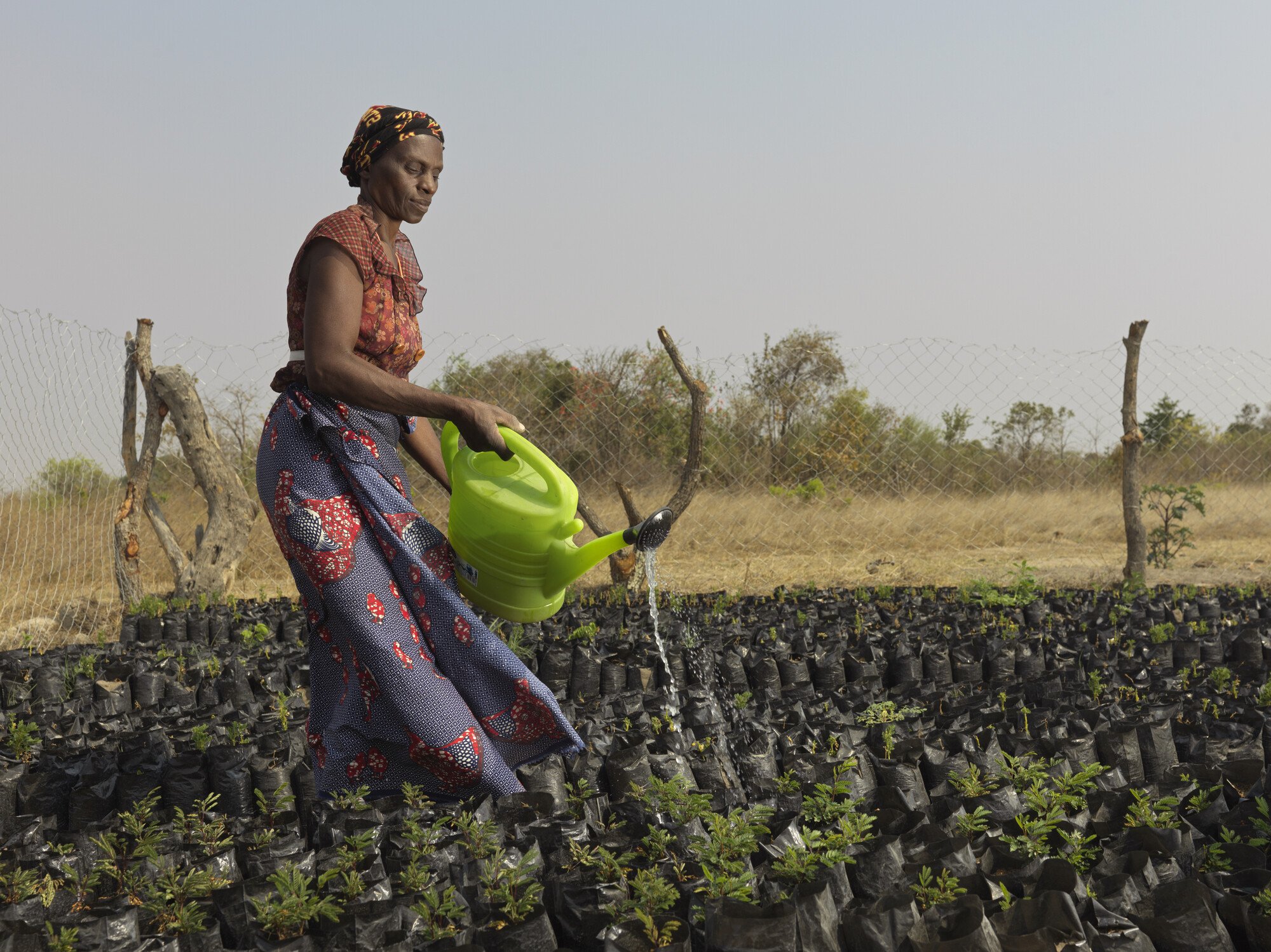 Zambia: Febbie Muleya plants trees from the nursery in Limbuwa B Village, Zambia. "To help the situation, CARE taught us how to plant trees for environmental restoration, gardening for our livelihoods and saving for our capital."