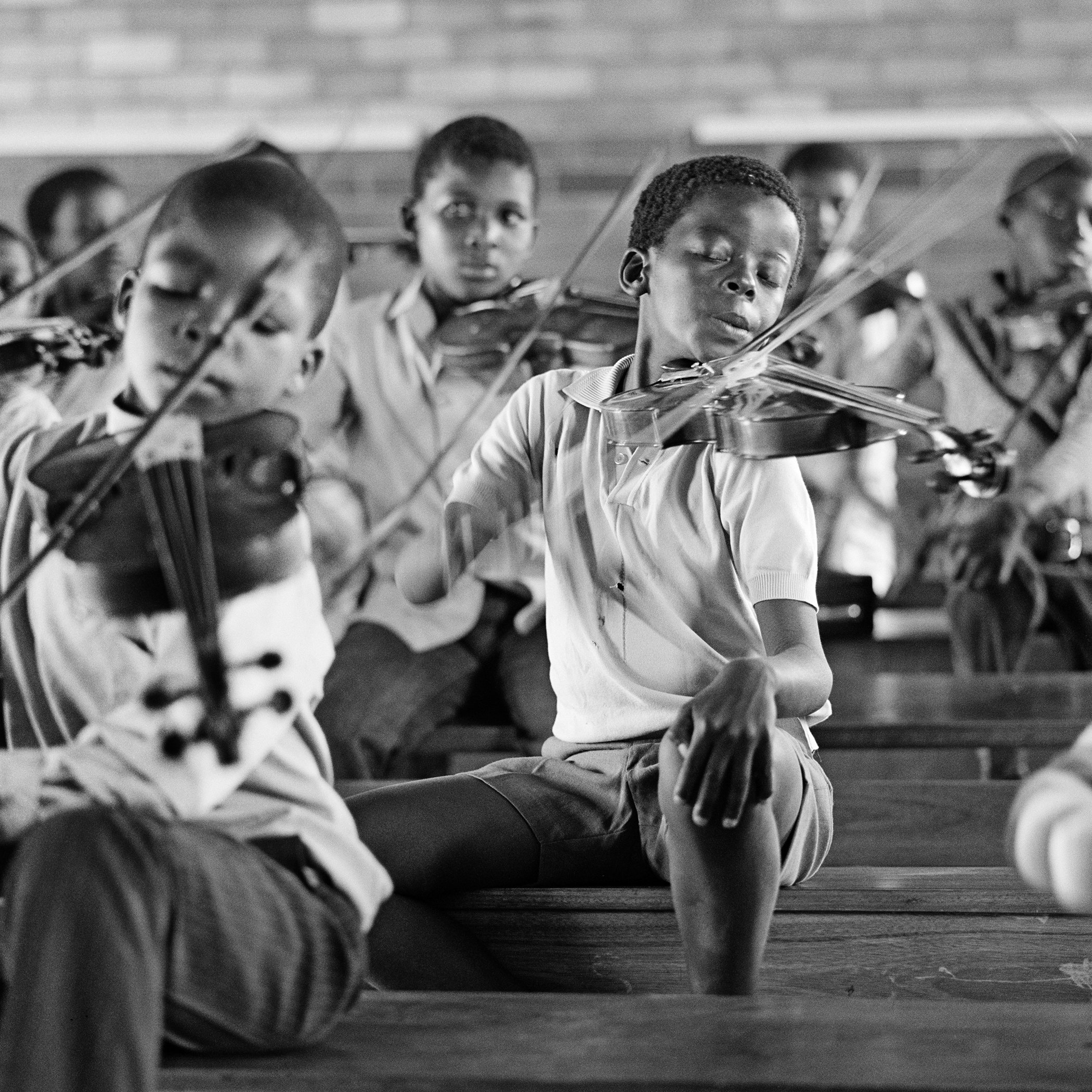 Children's class of the African Music and Drama Association, Orlando High School, Soweto, November 1972.