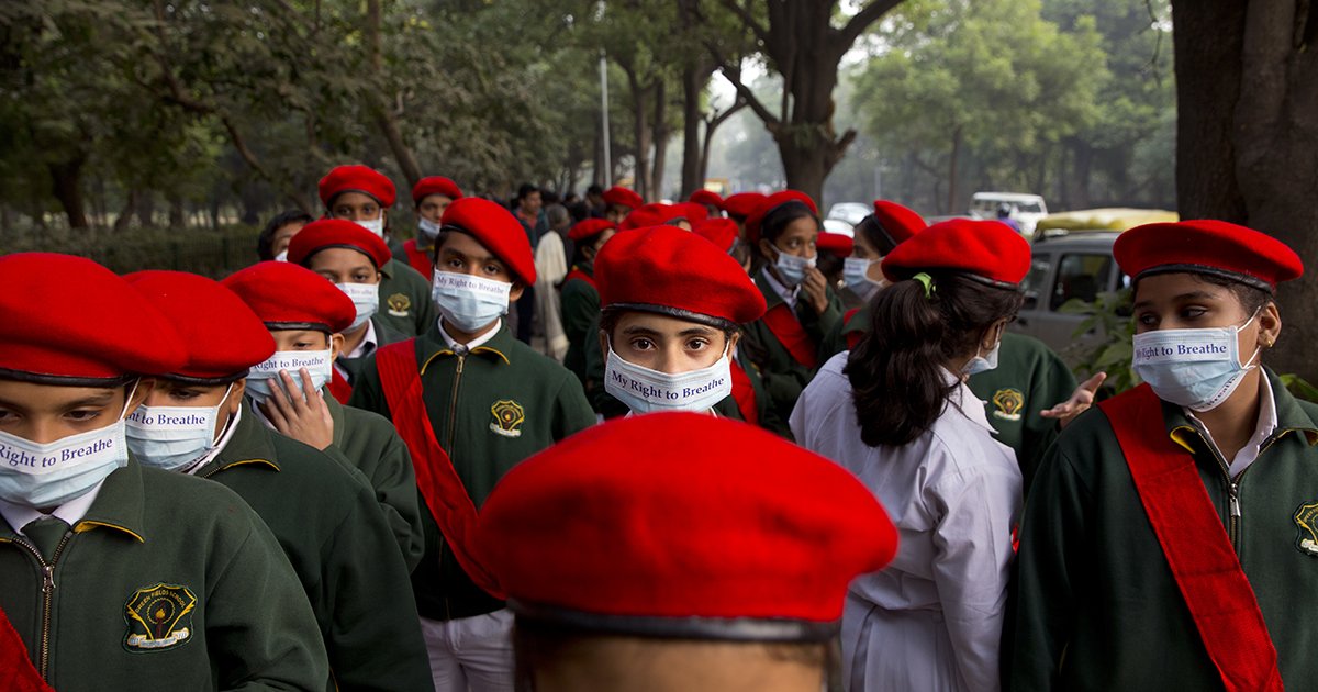 School children march to express their distress at alarming levels of pollution in New Delhi, India, Nov. 15, 2017. Image: Manish Swarup/AP