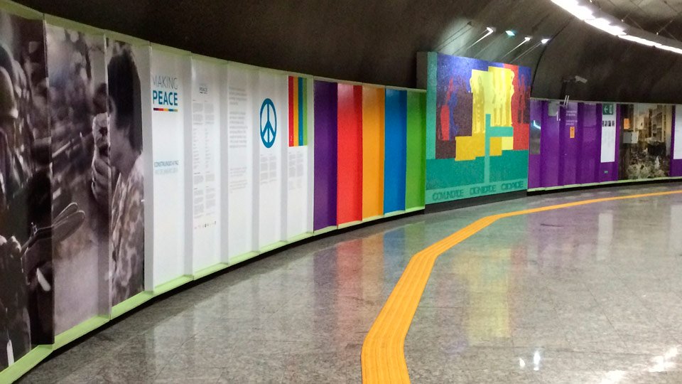 Local HP personnel worked closely with Geka, Metro Rio, and professional photographer and International Peace Bureau member Ashley Woods to get the posters mounted by August 1. The location of the posters made it even more visible to everyone in Rio. The Rio exhibit is the first location the exhibit has ever been on display in a metro station. Now, through International Day of Peace, September 21, Rio metro riders can view the photographs.