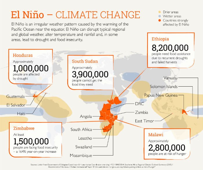 In the face of El Niño and other crises, leaders at the national, regional and international leaders have a responsibility to address the underlying causes of food insecurity and guarantee that the most vulnerable children and communities get ahead through an immediate, effective, global response to prevent loss of life and livelihoods. Next year, the UN hosts the World Humanitarian Summit, bringing together governments and aid experts to thrash out solutions. And during the Climate Summit in Paris, global leaders had another opportunity to address one of the most important underlying causes of climate-related disasters such as droughts and floods.