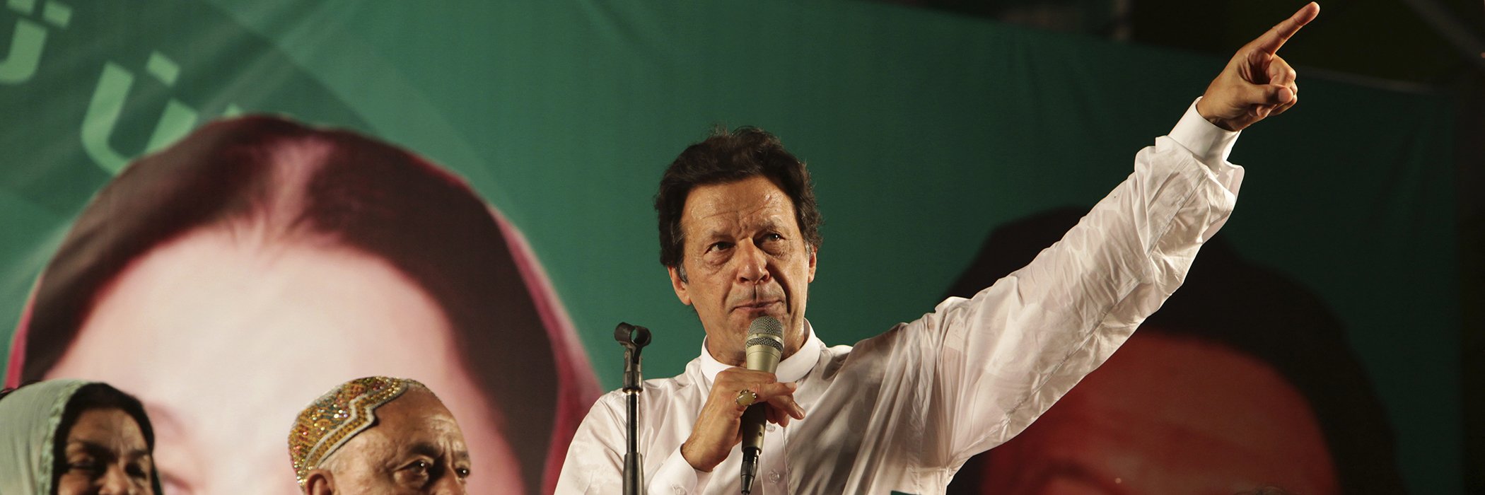 Pakistani politician Imran Khan, chief of Pakistan Tehreek-e-Insaf party, addresses his supporters during an election campaign in Lahore, Pakistan, July 23, 2018.
