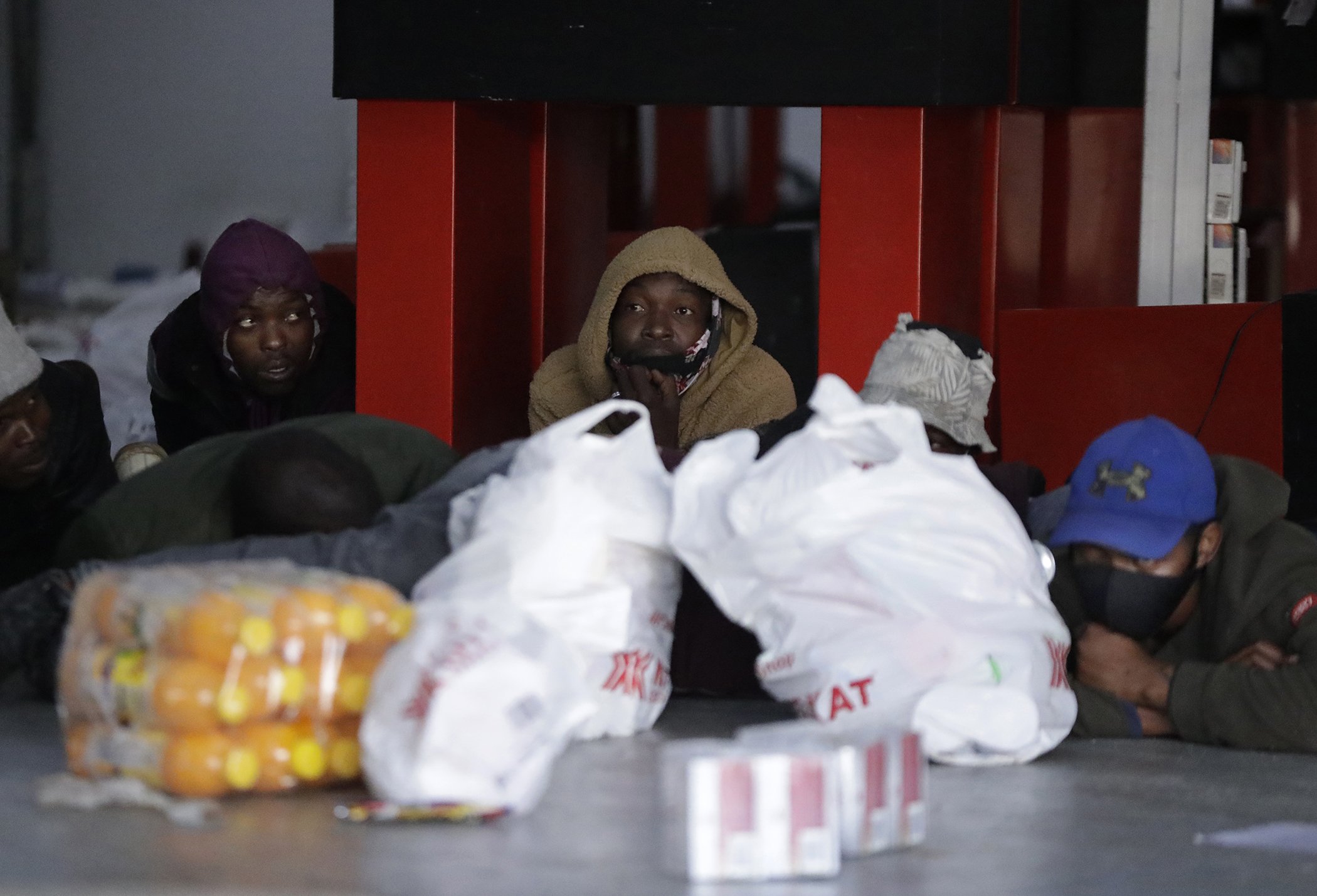 Apprehended looters with their goods on the floor inside a store in Vosloorus near Johannesburg, July 13, 2021.