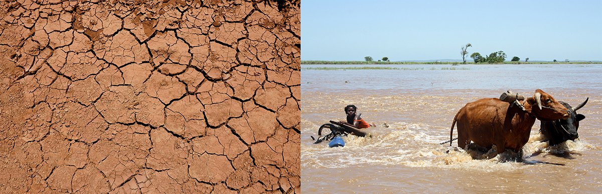 The weather system is manifested in two opposite extremes in Africa – either too much rain or extreme drought. In Kenya, where drought has been drying the earth for years, the sudden onslaught of rain is causing flooding; the rain can’t soak through the clay-like earth.