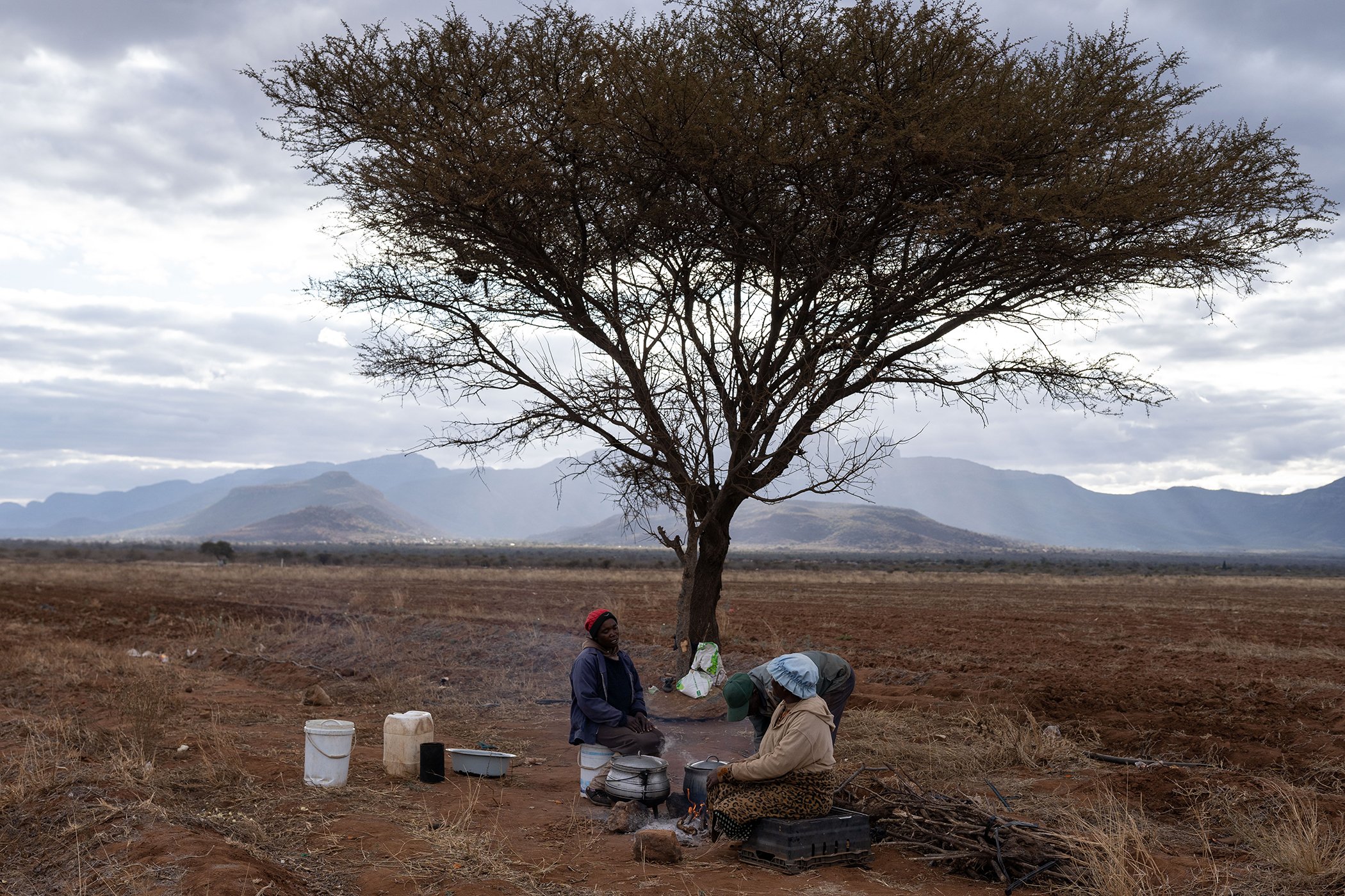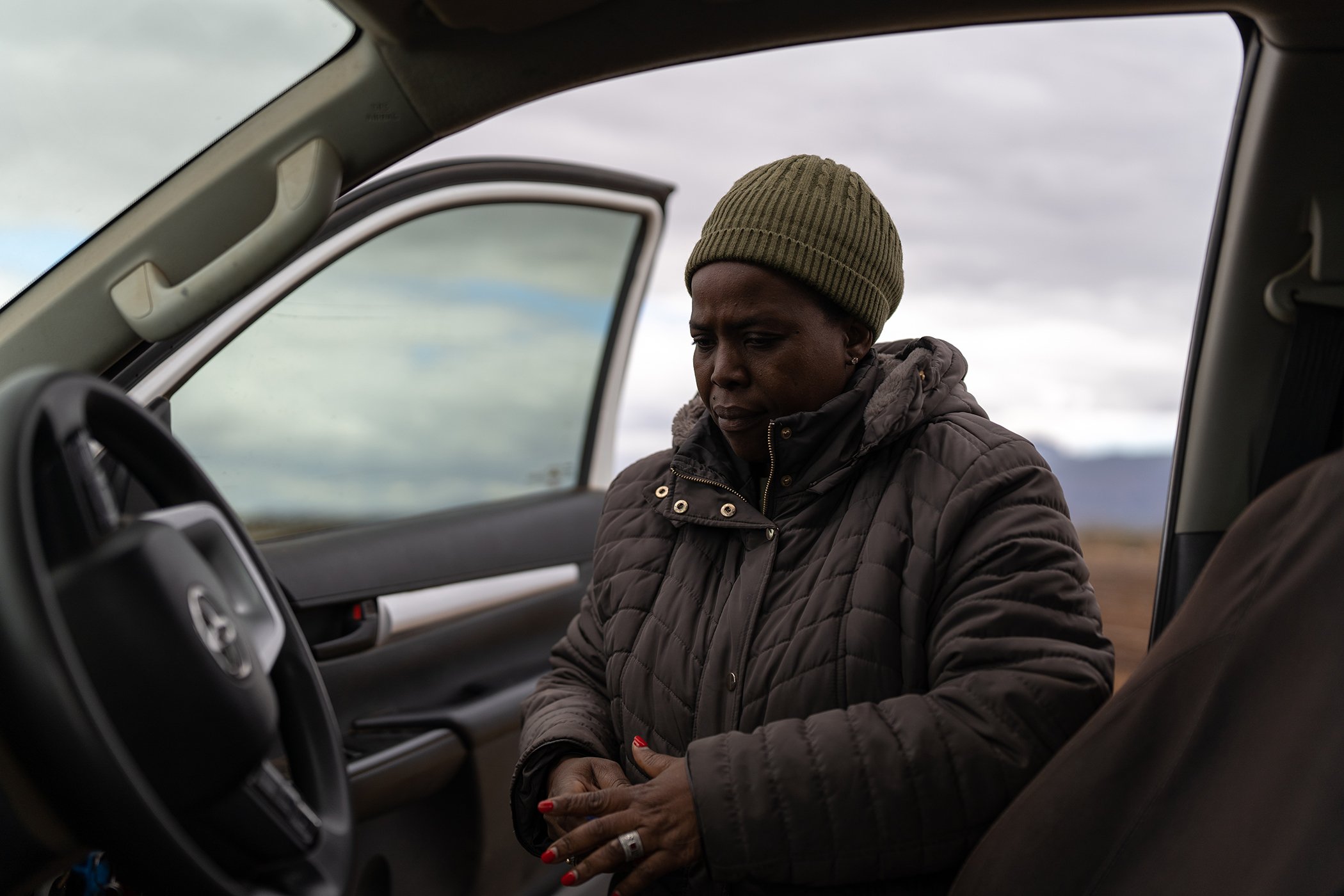 The Limpopo sky is covered with clouds that threaten rain. Periodically a wind blows, agitating the cold air and stirring up dust devils. Zelda Masoga walks across the dry sand bed where potatoes were just harvested. She wears a military-green tracksuit, covered by a warm grey puffer coat, along with a beanie and dark sunglasses. It is winter, after all.