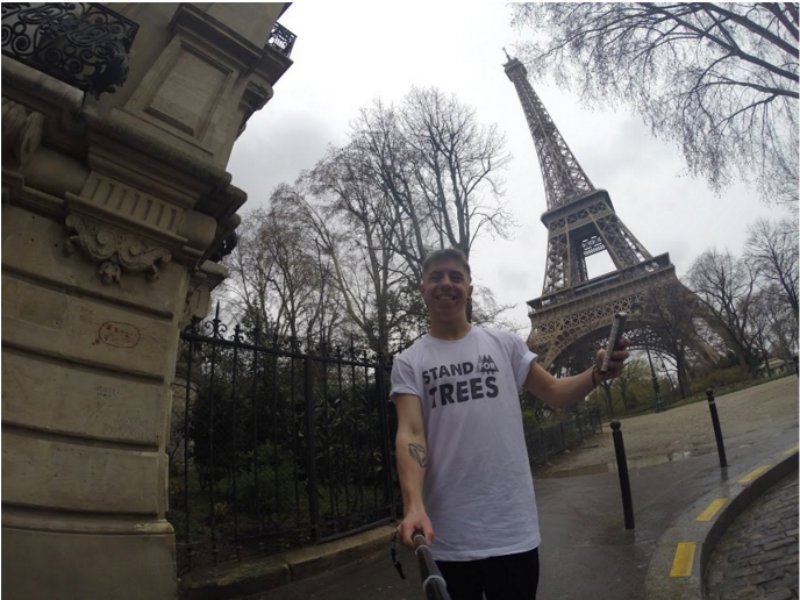 I wish I had a more interesting or exciting story to tell for this question, but if I'm completely honest, I checked into the hostel, had a shower and took a nap. After all that time longboarding I was so happy and overwhelmed to finally arrive at Madrid that the best way to celebrate was to sleep. Afterwards though, I had the pleasure of meeting a portrait, film and travel photographer by the name of Gyula. Together we explored Madrid's parks, he is a very talented film photographer and we have taken a photo of me in my Stand For Trees Tee, which will be exciting to see.