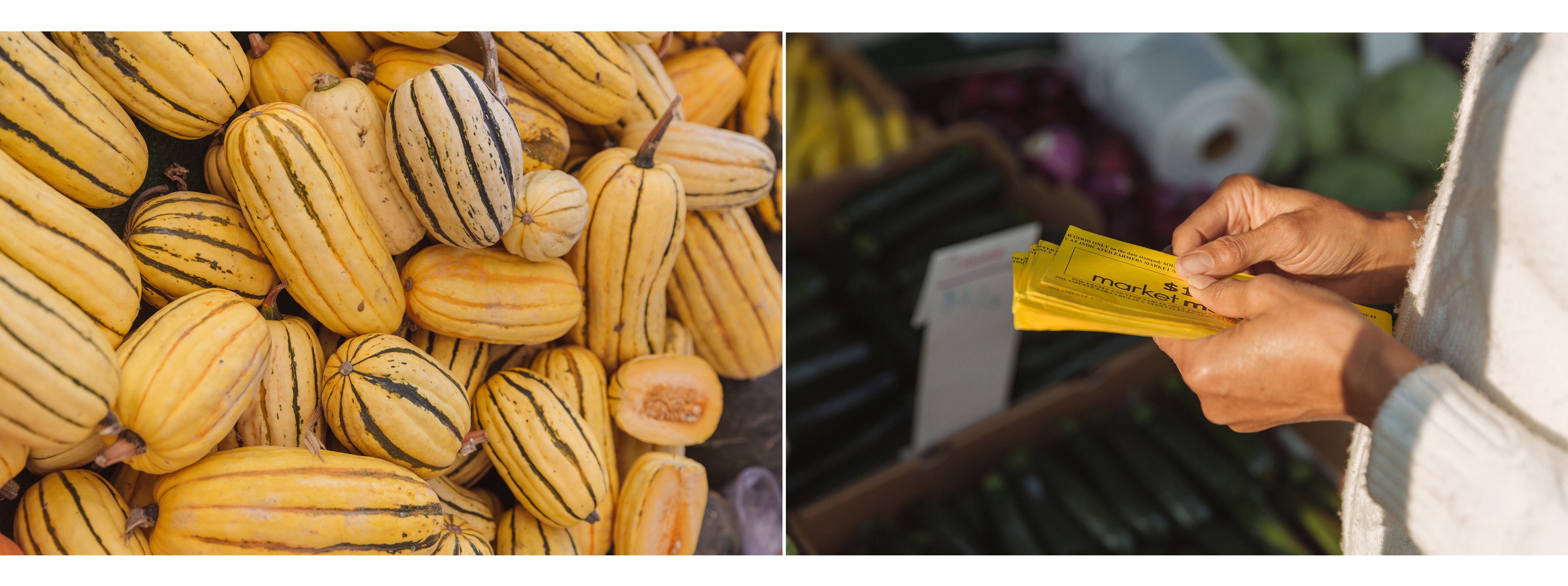 Lynetta buys produce with Market Match vouchers provided by nonprofit Hunger Action LA at the Pico Boulevard farmers market. With the vouchers, matched with her SNAP benefits â CalFresh â Lynetta has $10 extra to spend at the market each week.