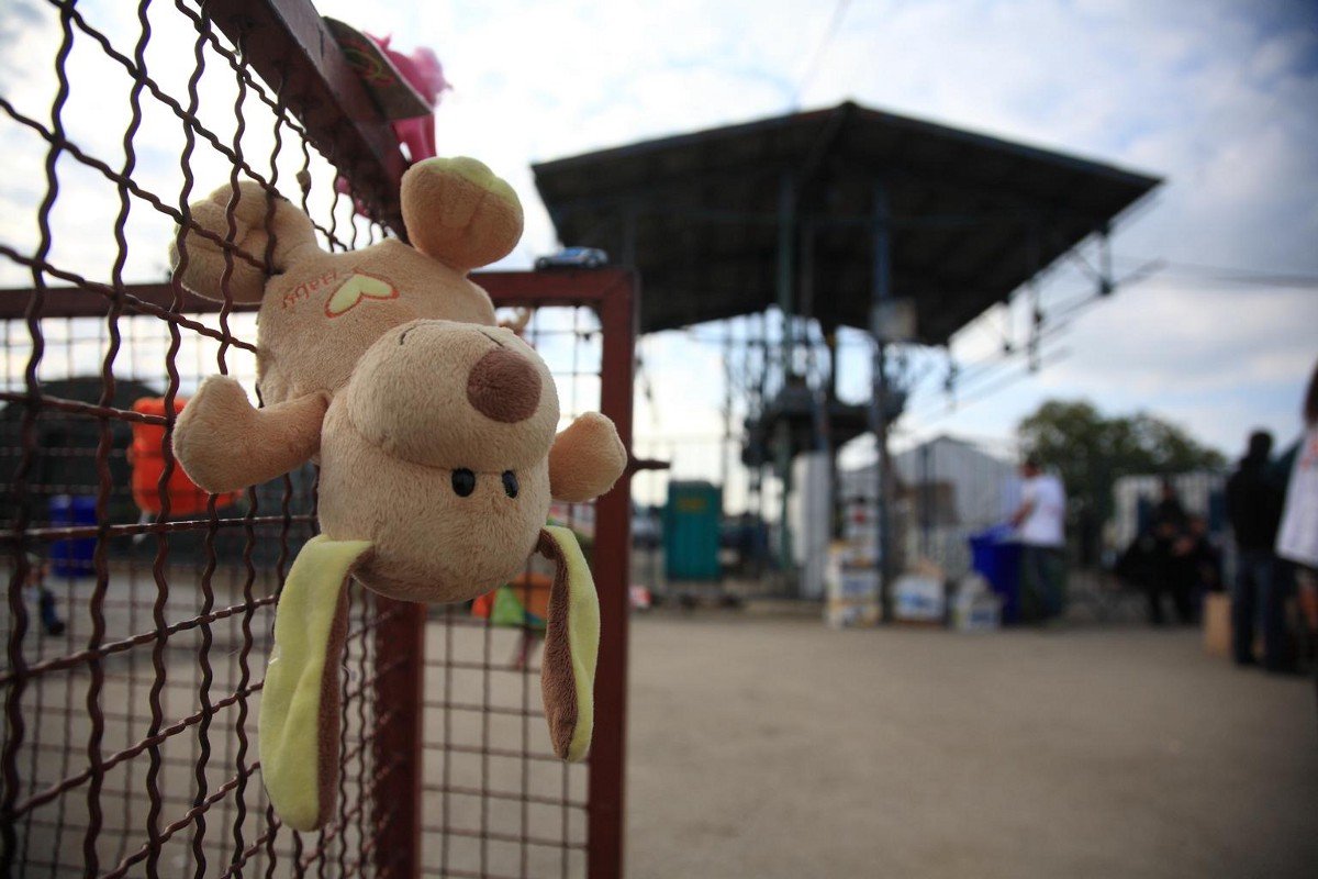 A stuffed toy dangles upside-down from a fence at the Opatovac reception centre in Croatia, left by local residents to welcome arriving refugee children. Amid the uncertainties in children’s lives, toys left behind can provide a sense of hope for those that follow.