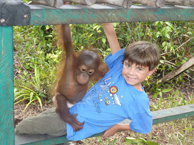 At ages 8 and 7, co-authors Abbey and Aiden Lemons met "Pete" and Dr. Birute Galdikas (the lady in the big floppy hat) at the Orangutan Foundation International Care Center in Indonesian Borneo. There, they witnessed first hand the plight of orangutans.