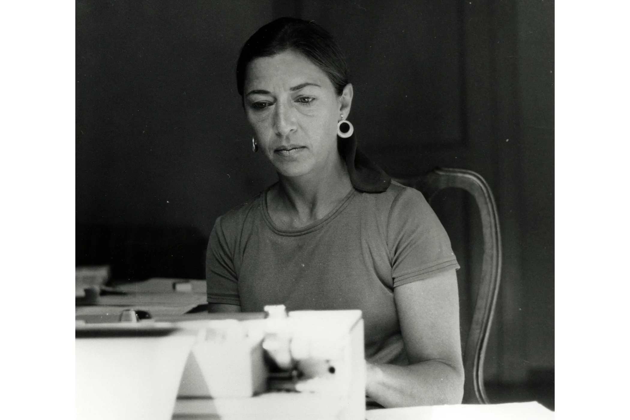 This image provided by the Supreme Court shows Ruth Bader Ginsburg types while on a Rockefeller Foundation fellowship in Italy in 1977.