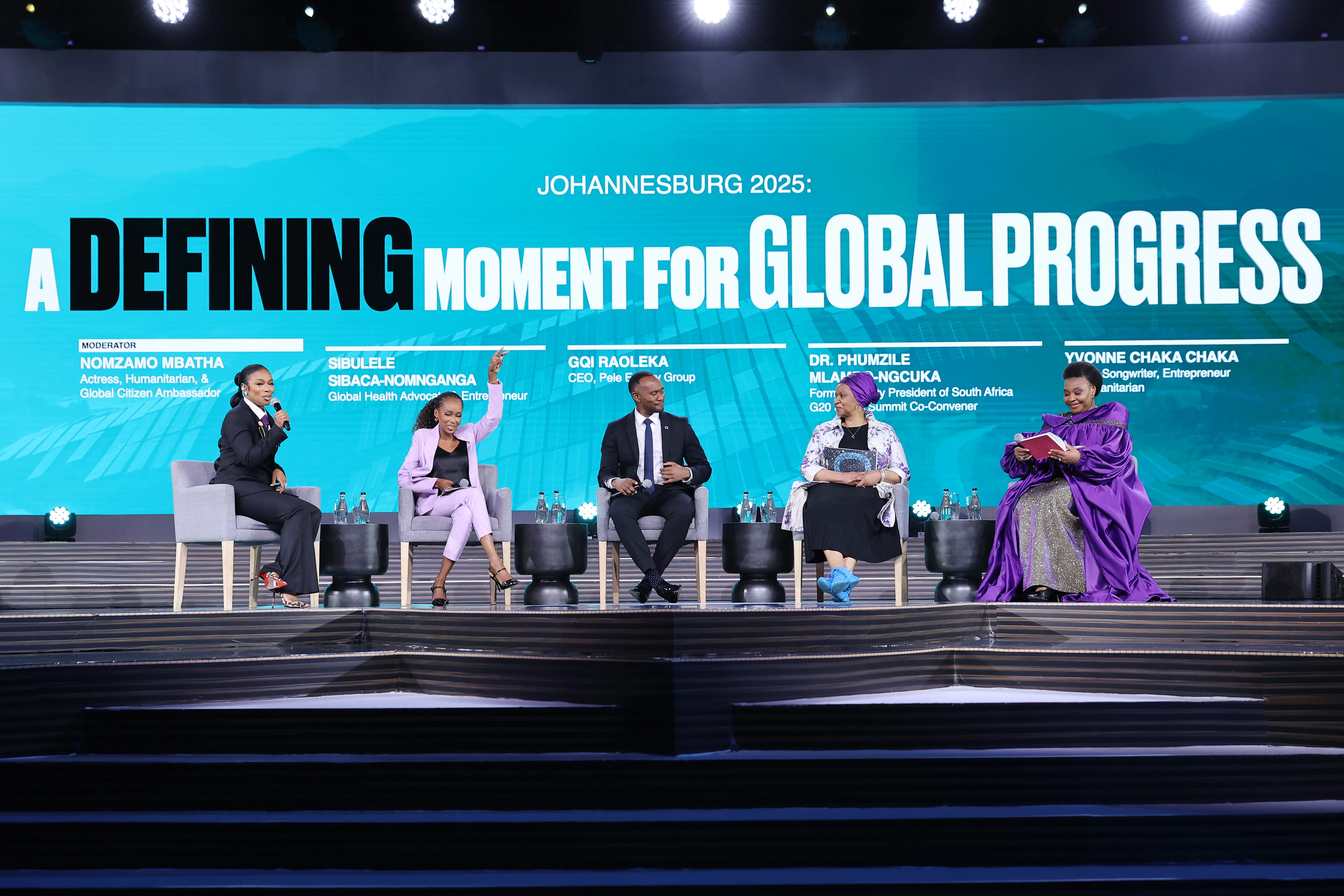 In this opening conversation, an all-star lineup — including actress and Global Citizen Ambassador Nomzamo Mbatha, global health champion Sibulele Sibaca-Nomnganga, Pele Energy CEO Gqi Raoleka, former South African Deputy President Dr. Phumzile Mlambo-Ngcuka, and legendary artist and humanitarian Yvonne Chaka Chaka — dove into what it means for the continent and the world for an African nation to host the G20 summit for the first time. Speakers shared how African leaders, innovators, and communities are reshaping the trajectory of global priorities, painting a picture of a continent leading the way — and inviting the world to follow.
