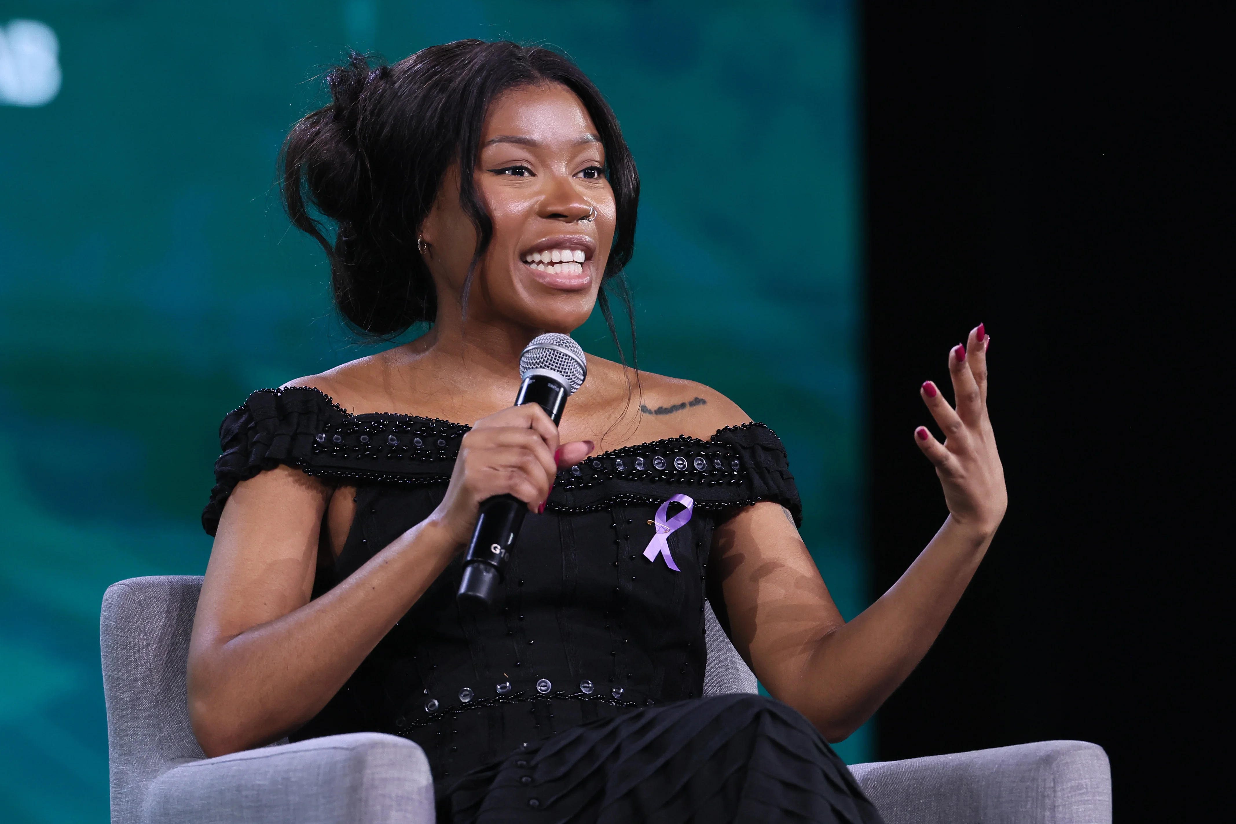 2025 Global Citizen PayPal Small Business Impact Awards winner, Zizipho Ntobongwana, CEO, Sheba Feminine speaks on stage during Global Citizen NOW: Johannesburg on November 21, 2025 in Johannesburg, South Africa. Image: Jemal Countess/Getty Images for Global Citizen