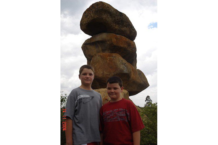 My song for Africa Day is Neria by Oliver Mtukudzi, a Zimbabwean icon. And sticking with my Zim roots, here's a picture of my brother and me at the balancing rocks, which feature on the old Zim banknotes.