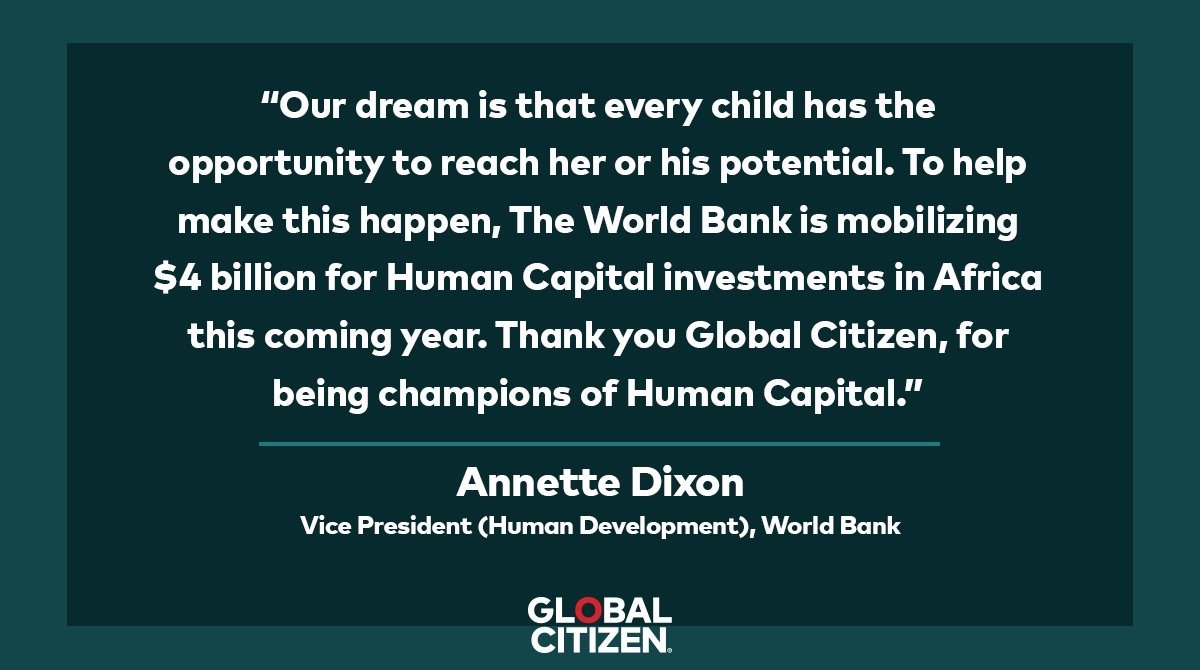 The hundreds of thousands of Global Citizens estimated to attend across New York and West Africa — and millions more watching the broadcast on Twitter and YouTube — will join the artists in calling on world leaders to step up across three key areas: gender equality, human capital, and sustainable economies.
