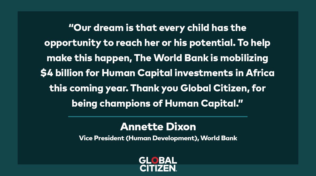 The hundreds of thousands of Global Citizens estimated to attend across New York and West Africa — and millions more watching the broadcast on Twitter and YouTube — will join the artists in calling on world leaders to step up across three key areas: gender equality, human capital, and sustainable economies.