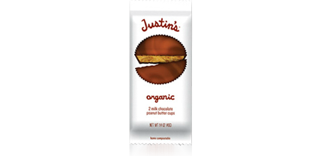 Justin’s milk chocolate and dark chocolate peanut butter cups are both organic and rainforest alliance certified.