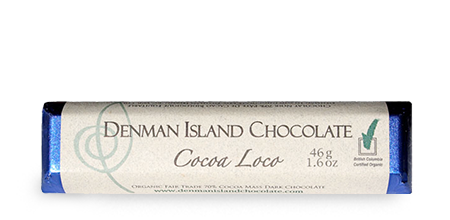 Denman Island chocolate donates 1% of gross income to local groups that support environmental conservation.