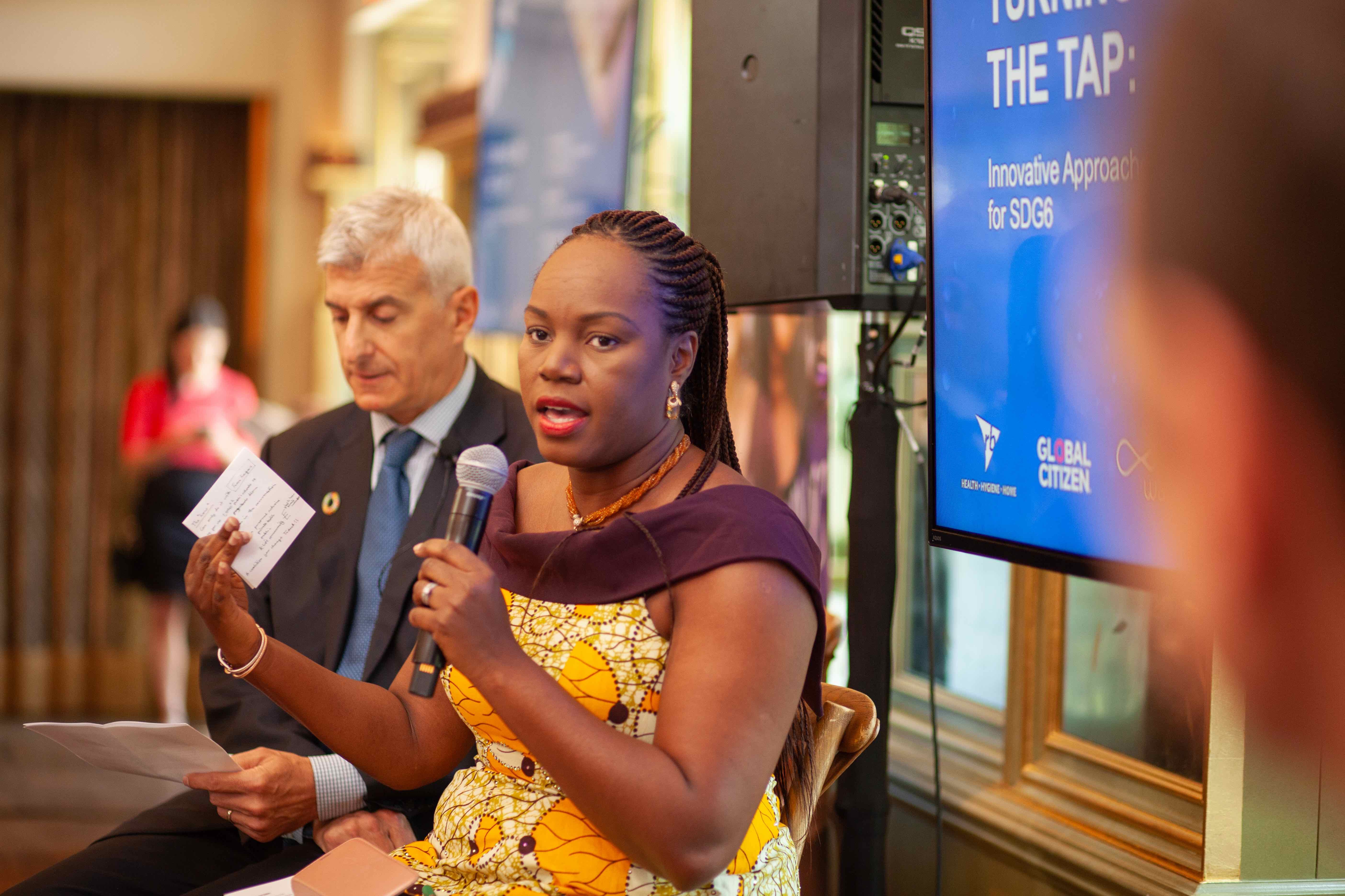 The first panel discussion of Thursday’s event tackled the question of finding innovative approaches to financing for Global Goal 6 — with panelists including Gary White, CEO and founder of water.org; Solape Hammond, Special Adviser on the SDGs to the Lagos State government; and Karin Krchnak, head of Water Resources Group 2030 at the World Bank.