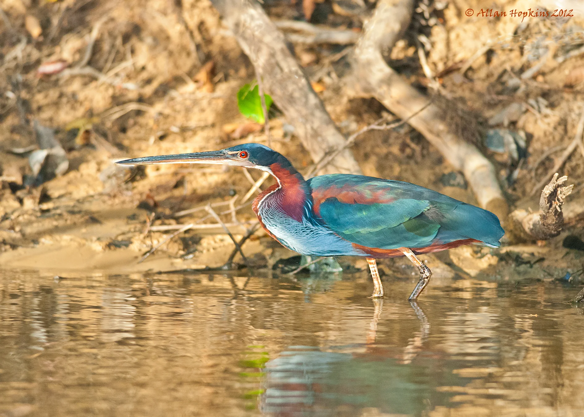 The agami heron, classified as a vulnerable species by the International Union for Conservation of Nature, spotted near the Rupununi River.