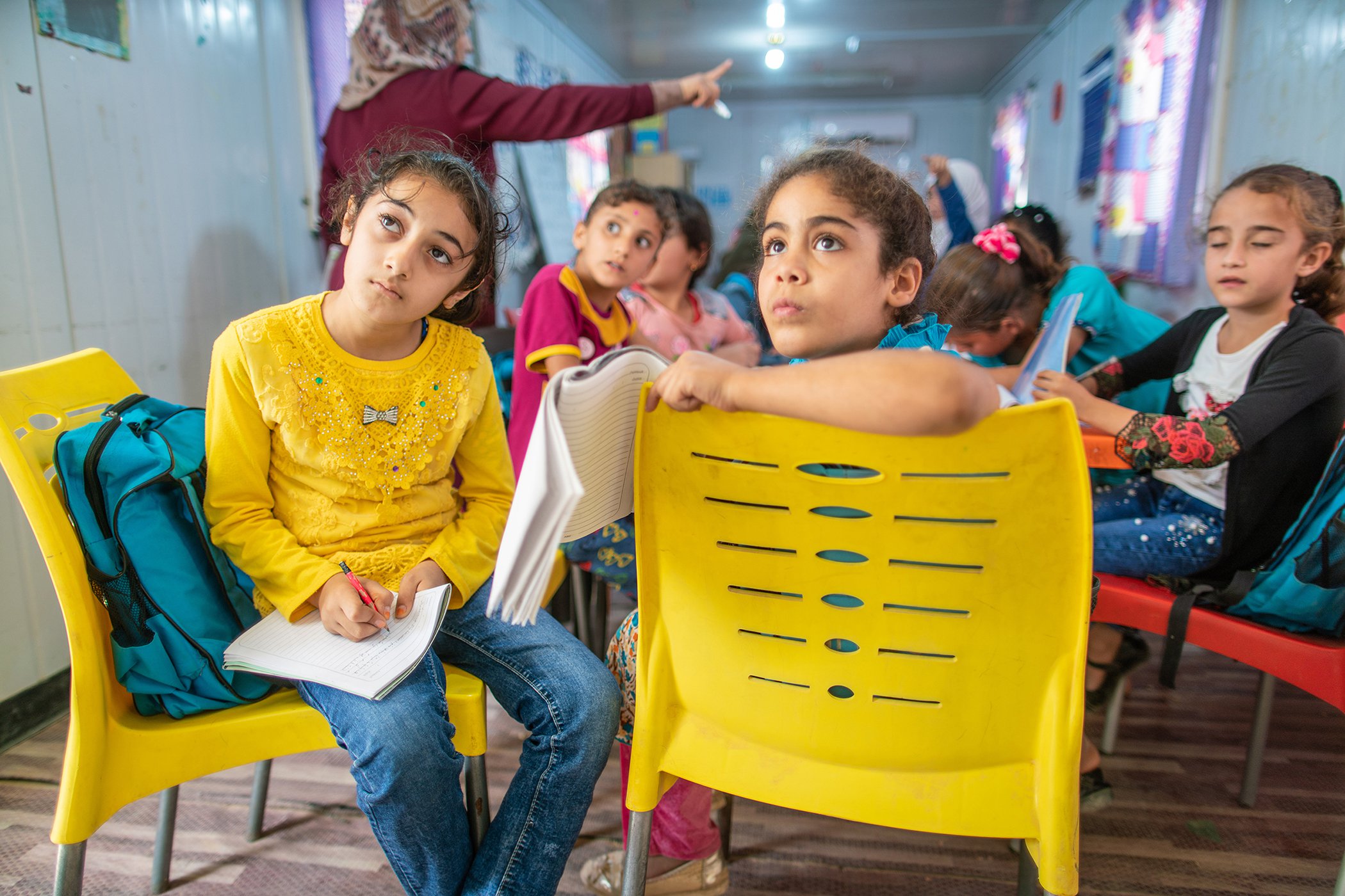 Students concentrate during their educational classes at the ‘Oasis Center for Resilience and Empowerment of Women and Girls’ operated by UN Women in the Za’atari refugee camp in Jordan.