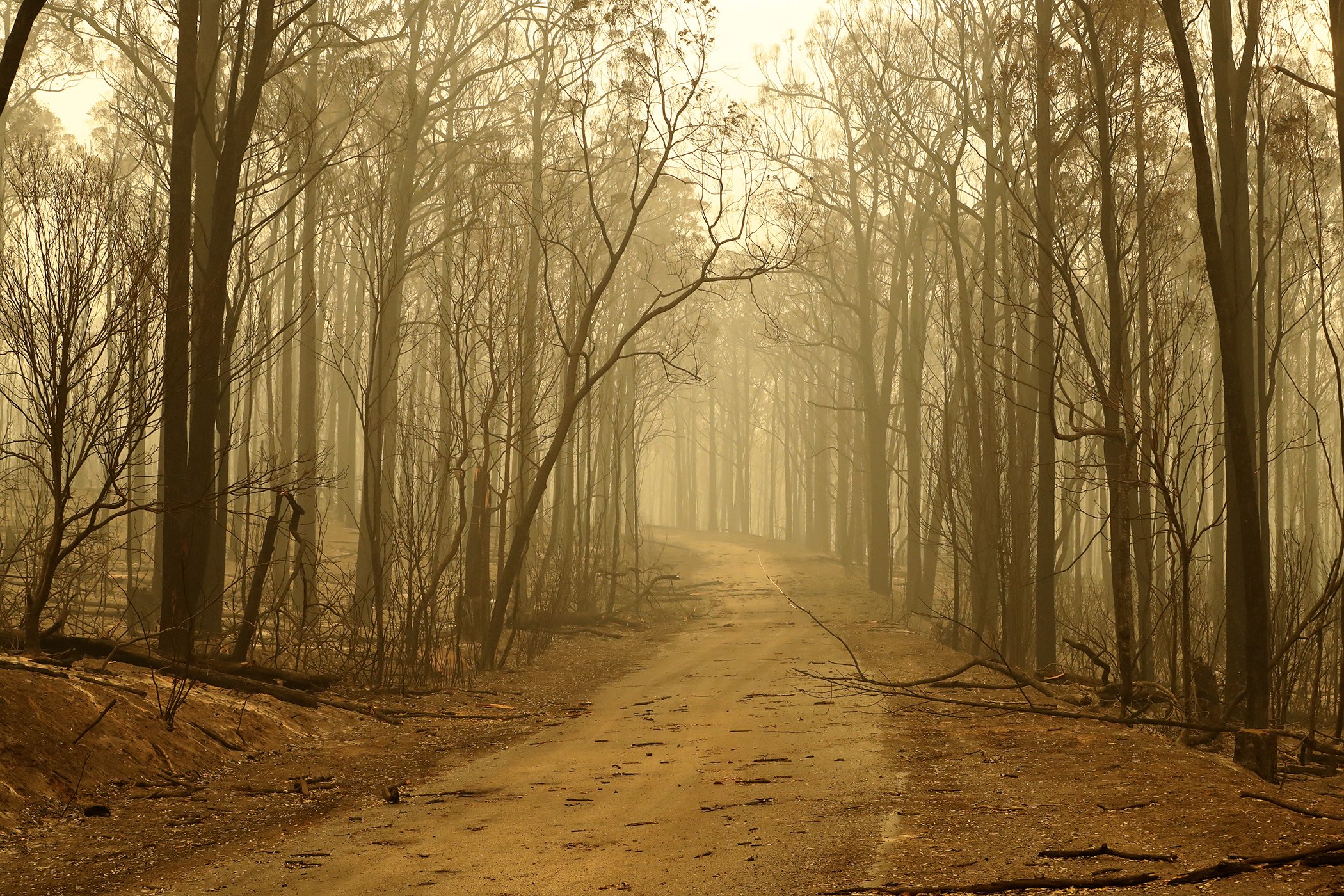 A view of fire damaged trees on Jan. 3, 2020 in Sarsfield, Australia.