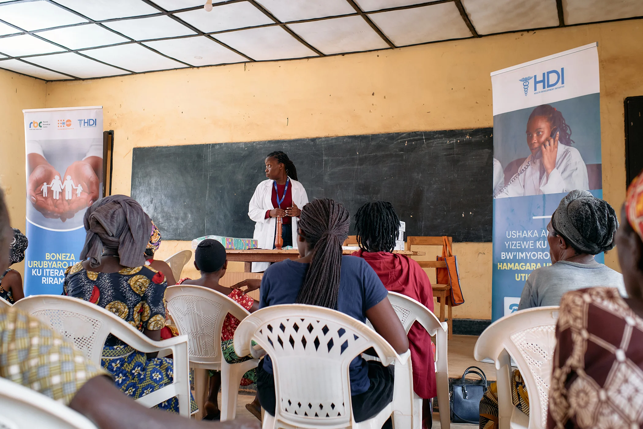 Residents of Cyaruzinge community are pictured during a workshop in January 2025, led by members of the HDI team on STI's, including their symptoms, transmission, and treatment. Image: Tracy Keza for Global Citizen