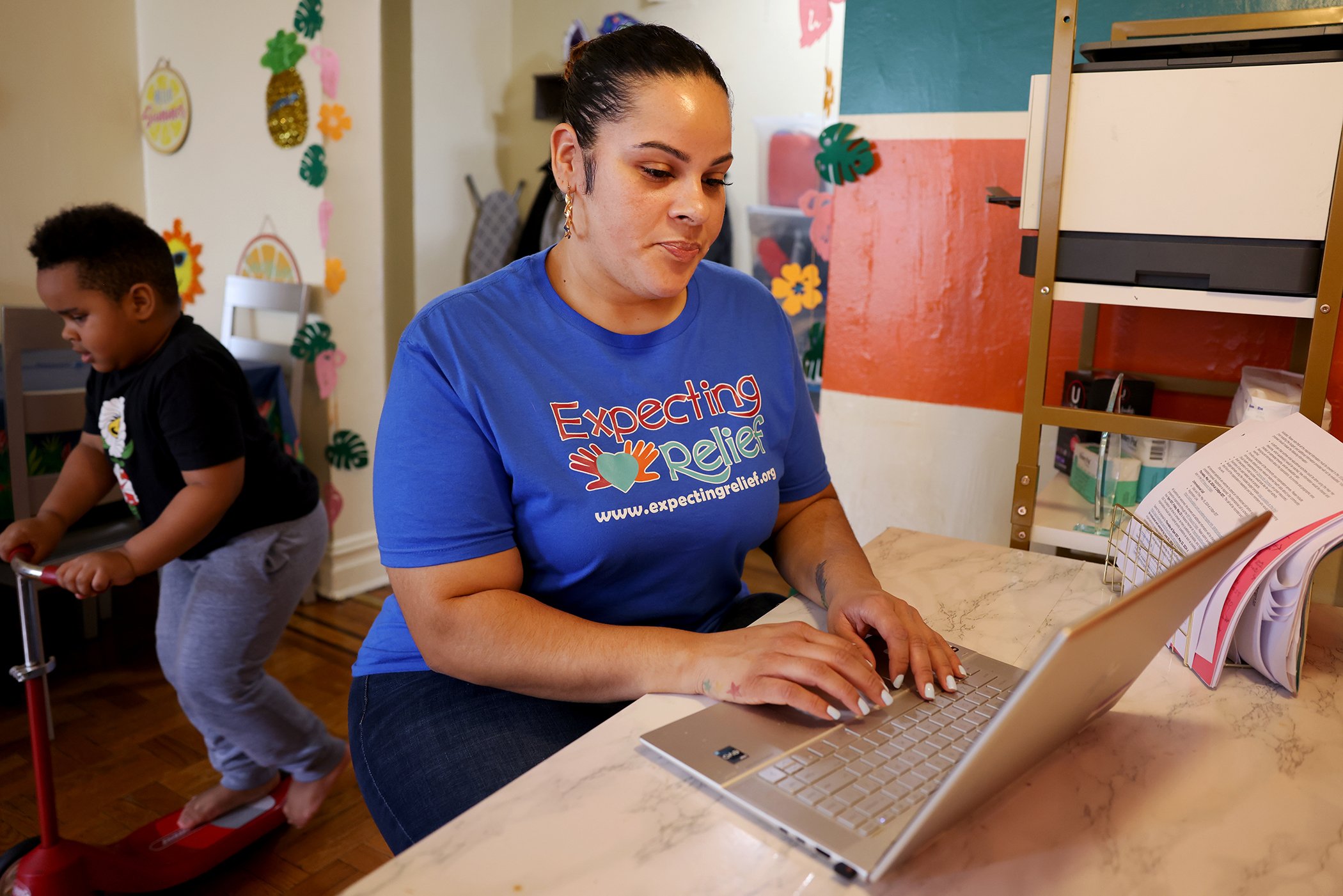 Vanessa Bracetty-Ormsby works out of her Brooklyn home on May 17, 2024.