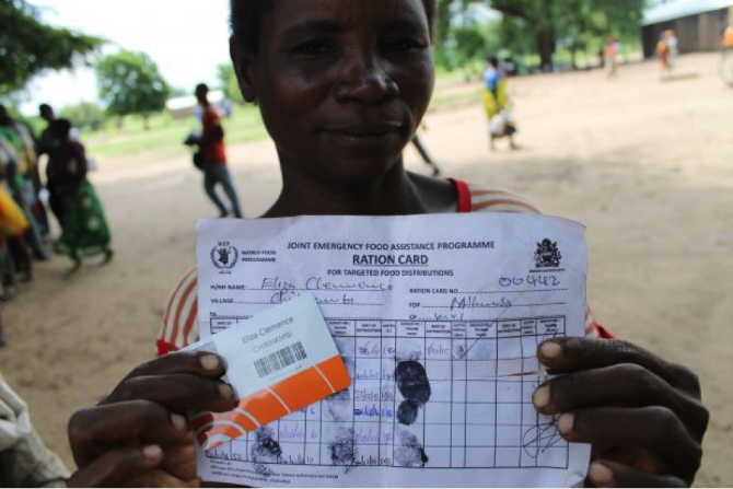 Before you can collect your maize, beans and vegetable oil, a food monitor double checks the ration card. This quality assurance measure ensures accuracy and appropriateness of the food basket.