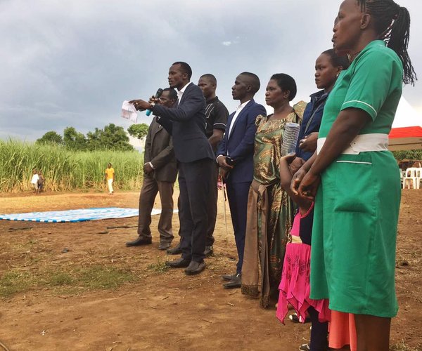 Denis Mukisa, the Mukisa’s third born son, Suubi’s brilliant program manager and the brains behind much of the progress that has been made at the center, then rose, flanked by his entire family. Directly addressing the politicians, he reminded them of their responsibility to Ugandan mothers and children. He presented Global Citizen’s petition to them and reminded them of the multitudes of people who are already working to provide safe maternal care, including hundreds of community members in Budondo. One by one, the politicians arose and pledged their support.