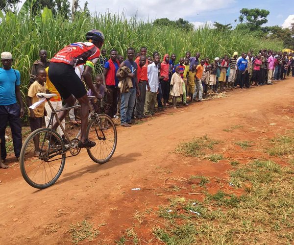 There was a rhythm to the day. As soon as the cyclists were set off on their loop around neighbouring villages, the crowd began to grow and each return they made past the venue caused a wave of people to run to the road to see them pass, each time accompanied by a larger number of motorbikes carrying up to four adults, waving branches and blasting music from their stereos.