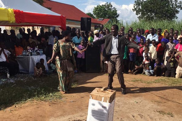 The crowd just kept growing. Mothers carrying their babies, toddlers flanked by older brothers and sisters, fashionable teenage boys, elderly women seemingly unaware of all the eyes on them as they walked over the wide stage to the seats that awaited them under the shade of the tents. Colour filled the vista, the bright blue sky and hot sun reflecting the lucent green of sugarcane and the mosaic of colourful clothes worn on hundreds of bodies, excited by the loud Ugandan pop music and impressive dancers performing before them.