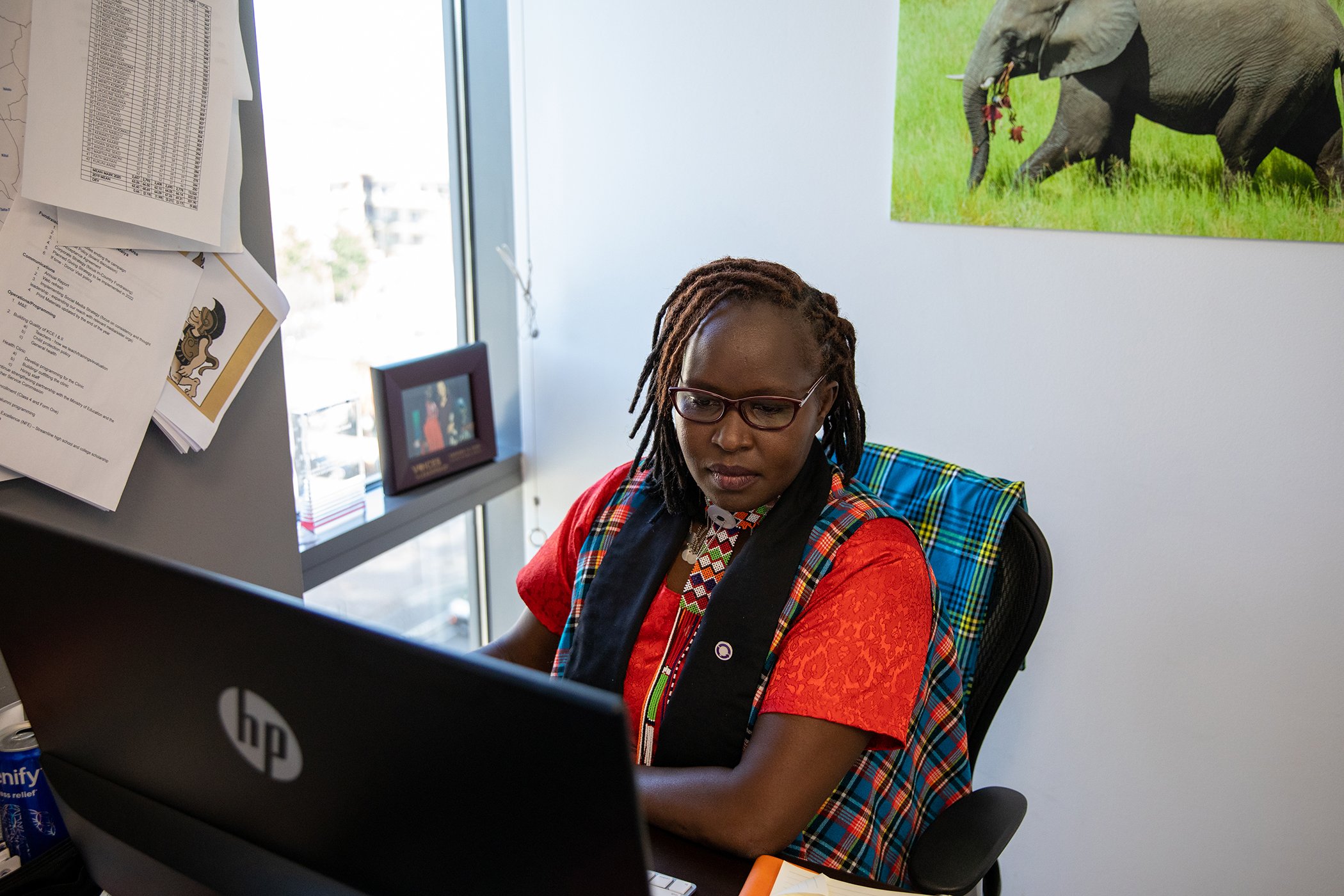 Dr. Kakenya Ntaiya works in her office in Arlington, Virginia on March 3, 2022.
