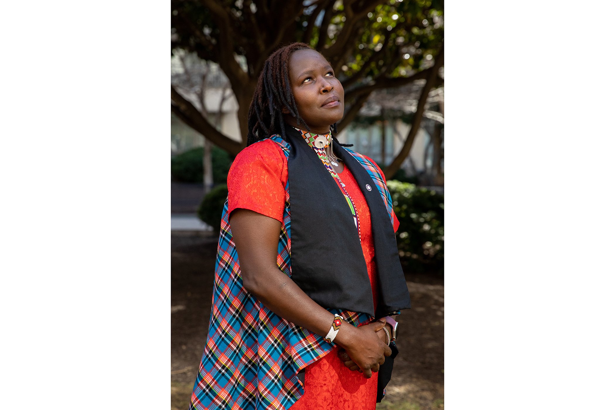 Dr. Kakenya Ntaiya, founder of Kakenya’s Dream, poses for a portrait outside of her office in Arlington, Virginia on March 3, 2022.