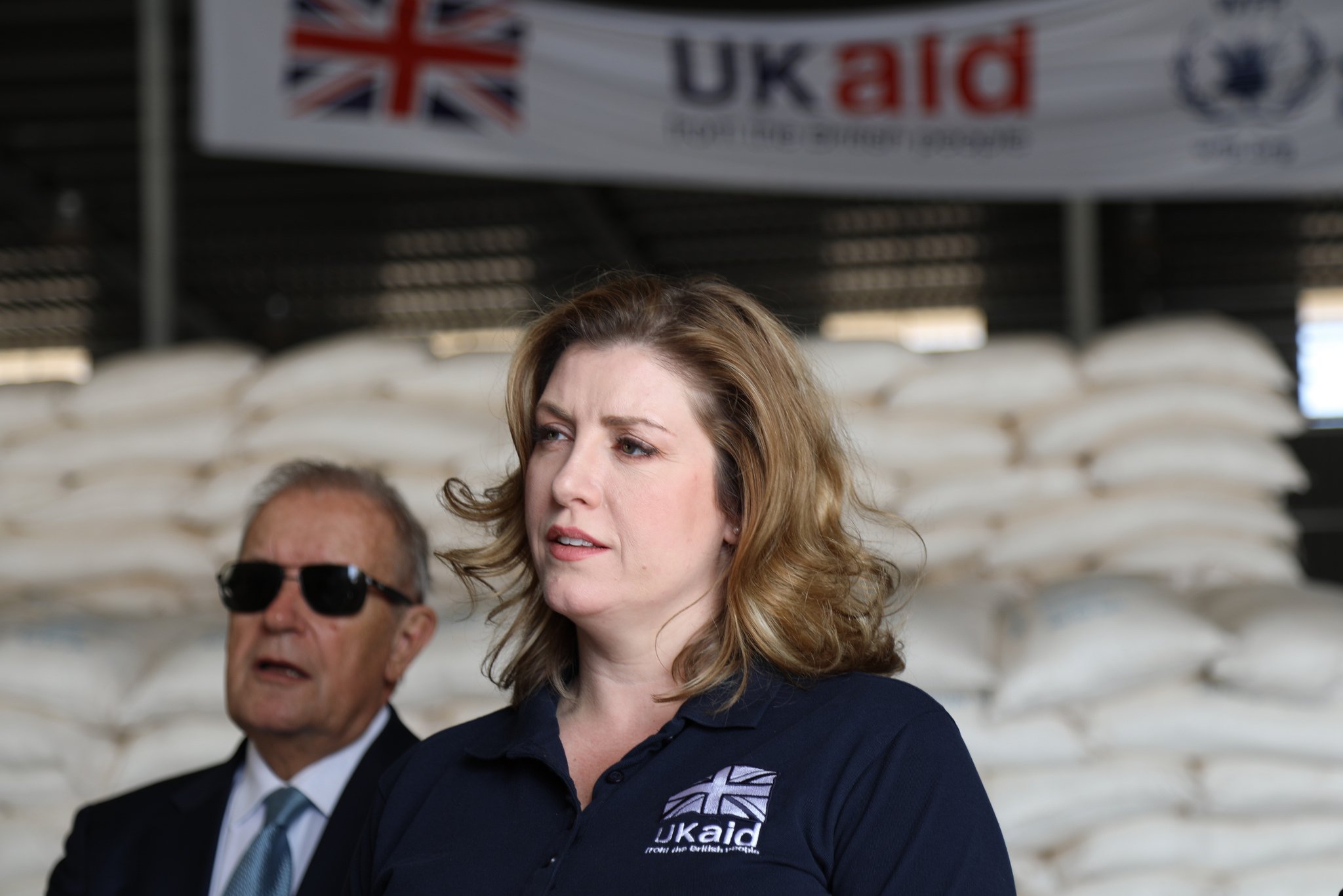International Development Secretary Penny Mordaunt sees UK aid at work, at a World Food Programme warehouse in Djibouti.