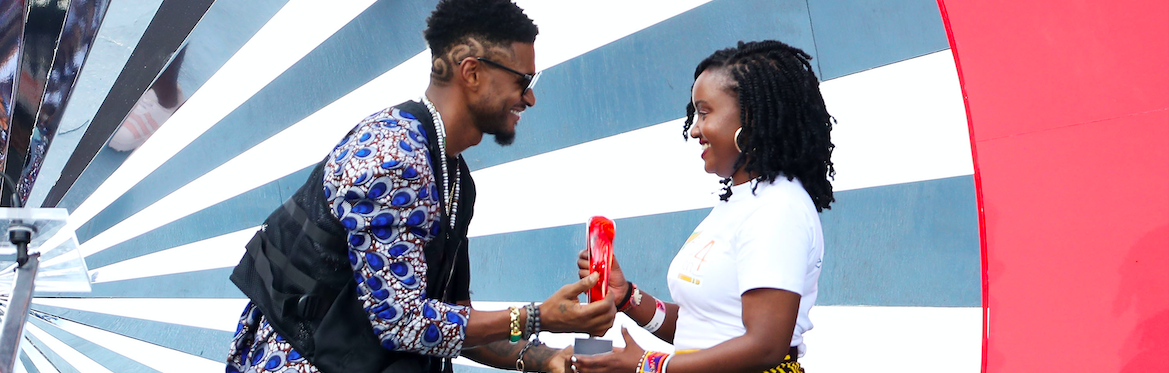 Wawira Njiru, founder and executive director of Food for Education, accepts the 2018 Global Citizen Prize for Youth Leadership at Global Citizen Festival: Mandela 100 on Dec. 2, 2018 in Johannesburg.