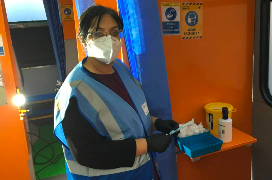 Patel is among hundreds of people vaccinated on the double-decker bus visiting mosques in the borough of Redbridge since it opened last week to help vaccination teams reach vulnerable communities, overcome vaccine hesitancy, and bust vaccine myths.
