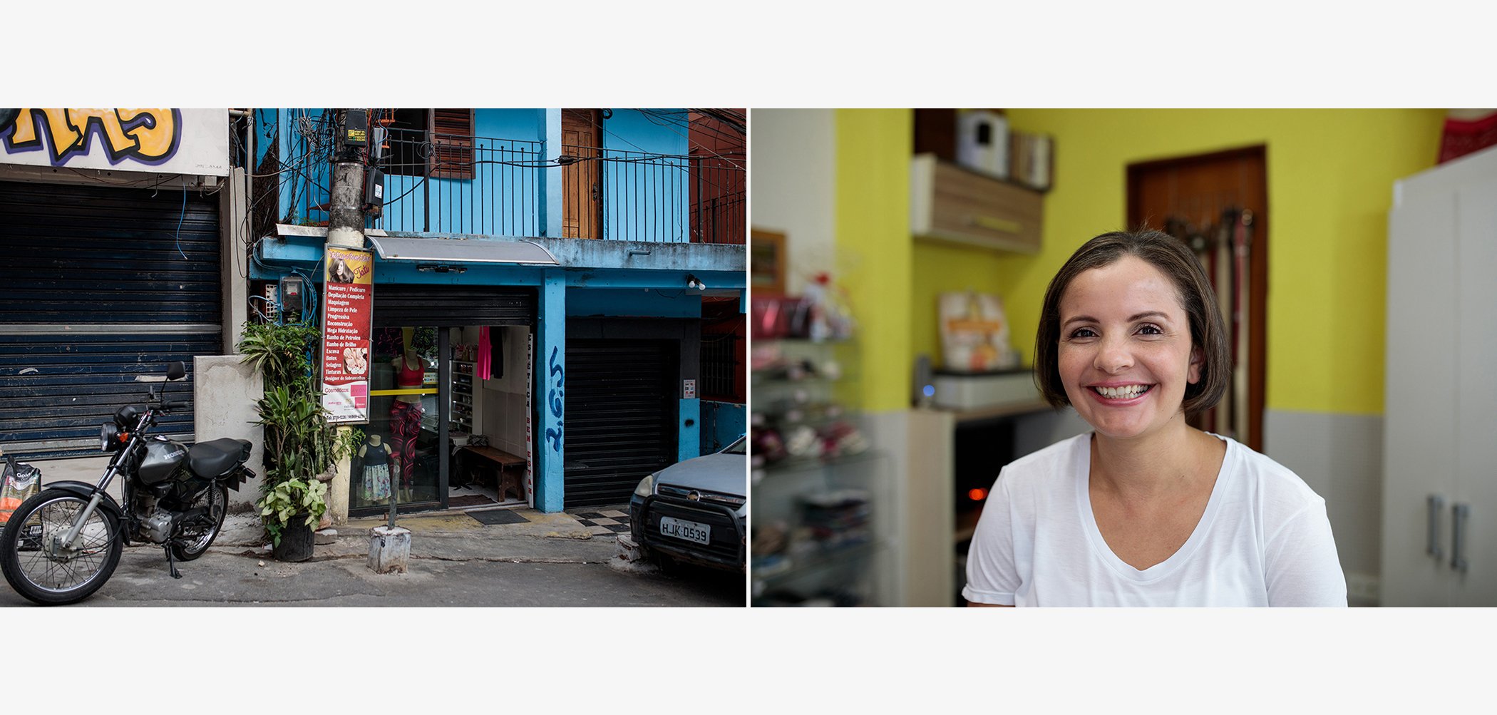 Tatiane Santos, a micro-entrepreneur and owner of a beauty salon in Paraisópolis, São Paulo, was helped by the Tamo Junto platform. With their help, her business — pictured on the left — has gone through many changes already.