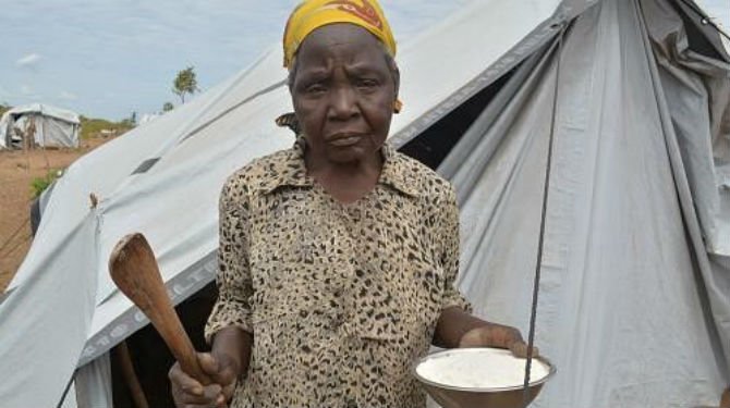 For Mwaona, life in a new village is not complete. She is an old woman who cannot work to earn a living. Her farm land is covered with sand, making it unusable for agricultural production. Getting food is a challenge. The only clothes she wears are the ones she received while at the displacement camp.