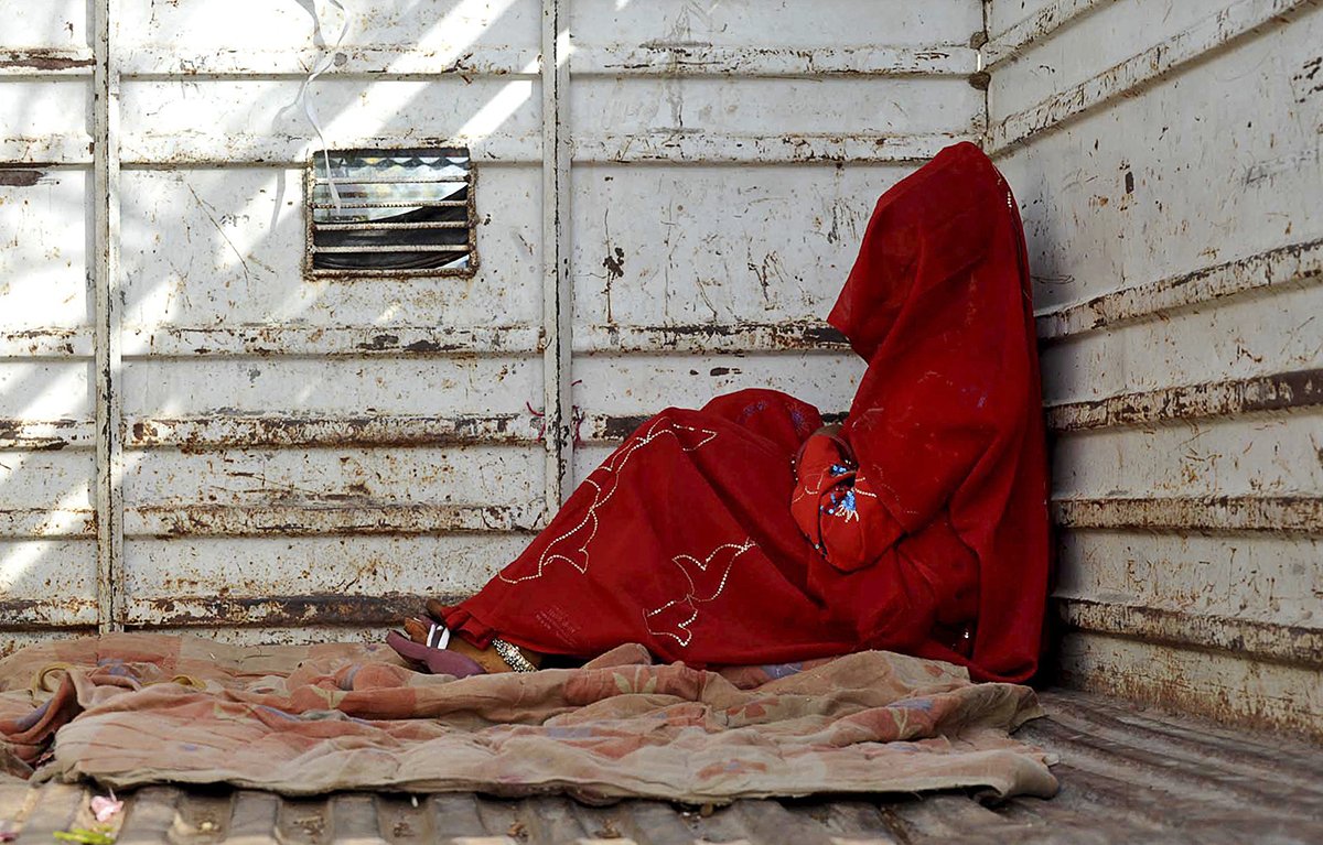 In this May 7, 2011 file photo, 7-year-old child bride sits in the back of a truck as she waits for the rest of her family members after being wed.