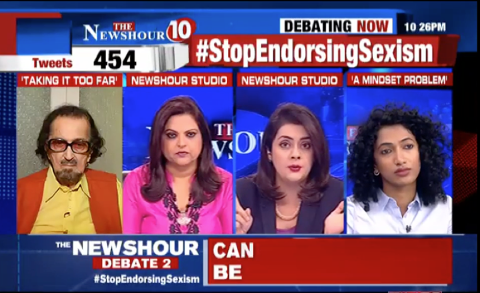 Trisha Shetty, far right, on a newshour televised debate for India Times