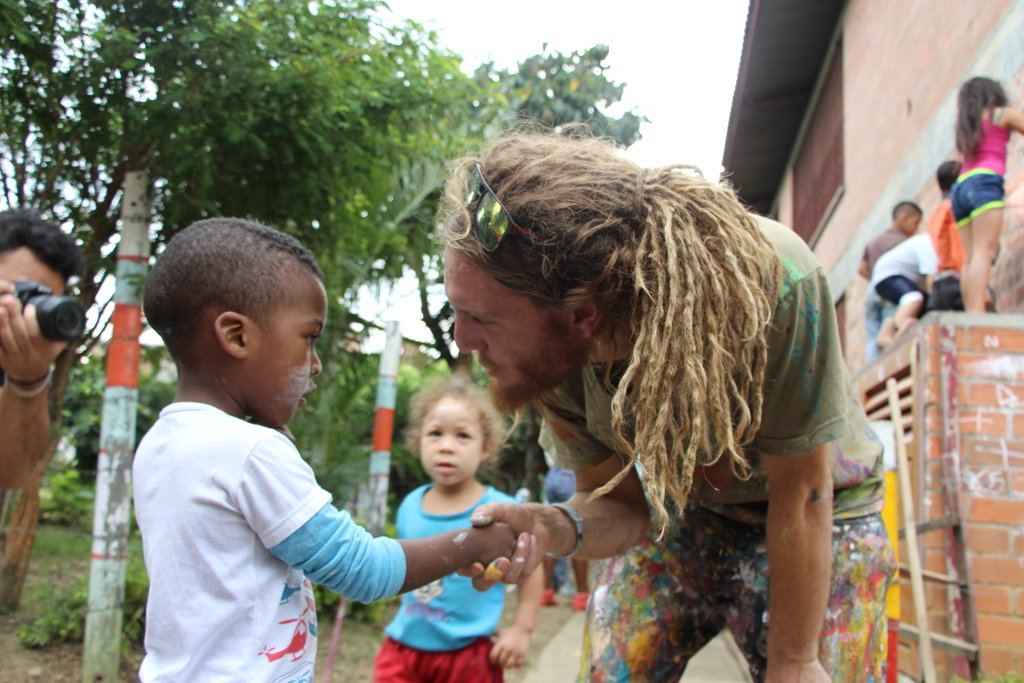 Much of the work he’s done through “Artolution” has been with some of the world’s poorest and most marginalized communities: slum dwellers in India, Kenya, and Peru; Syrian refugee children in Jordan; aboriginal communities in Australia and New Zealand.